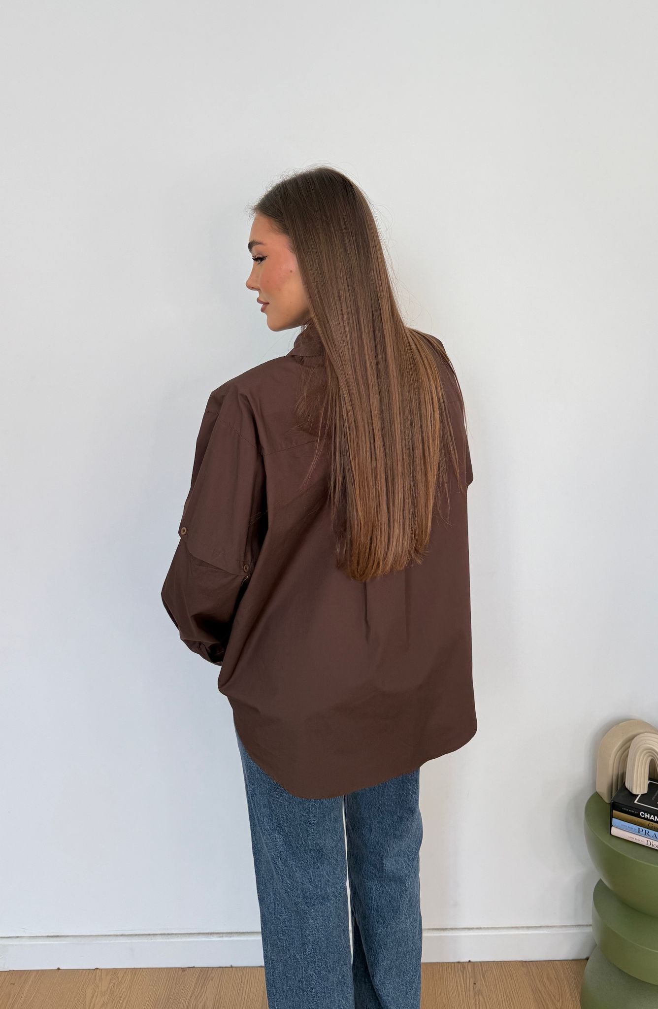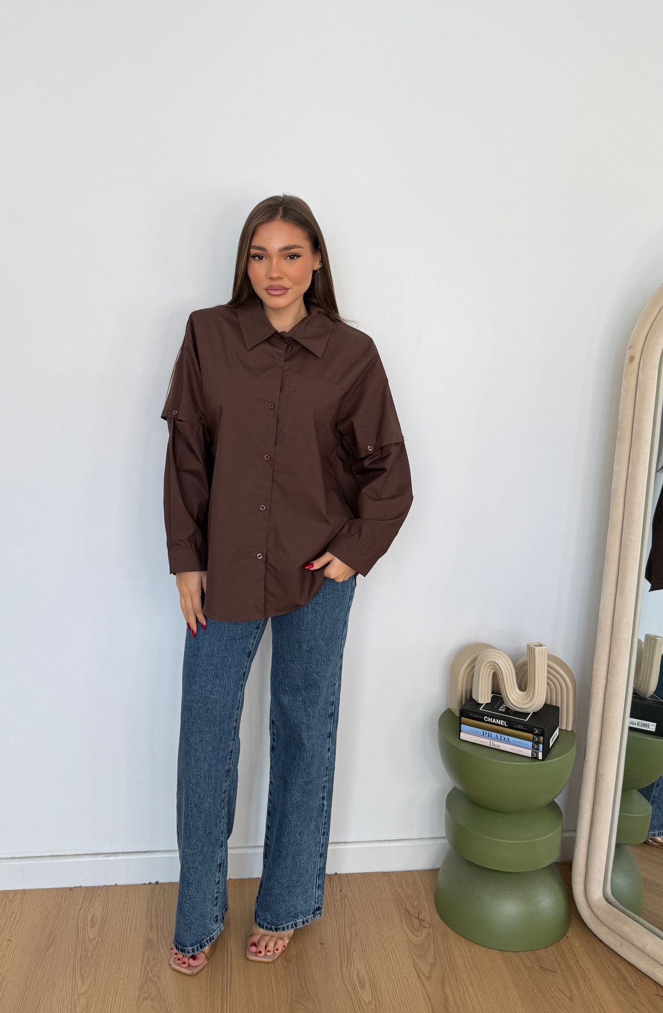 Camicia da donna con spalline imbottite e maniche removibili modello oversize e vestirà bene fino ad una M/L