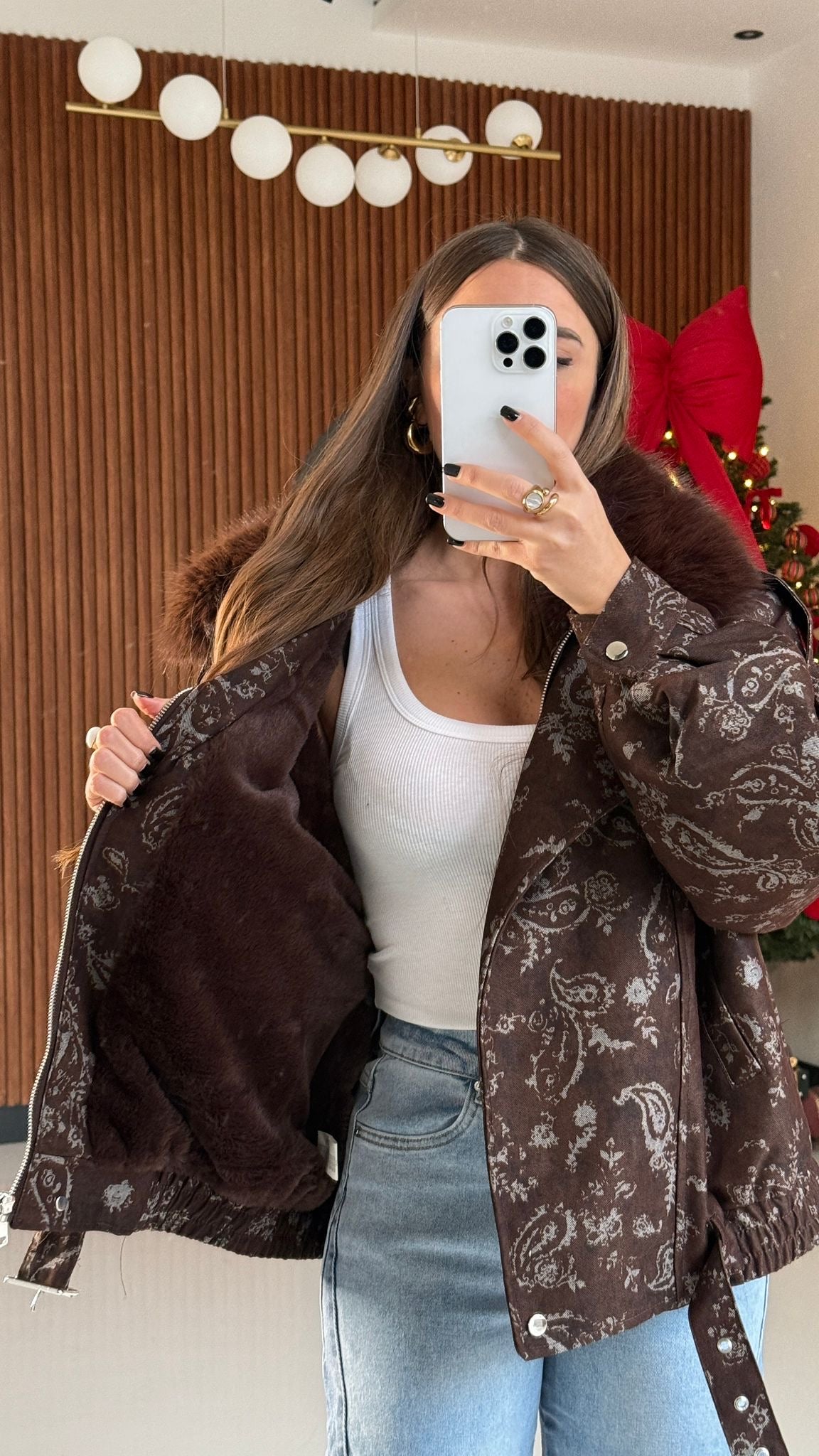 Giubbino da donna con pelliccia ecofur interna, colletto rimovibile, chiusura con bottoncini e zip sul davanti ed elastico in vita. Taglia unica, veste bene fino ad una taglia M/L piena.