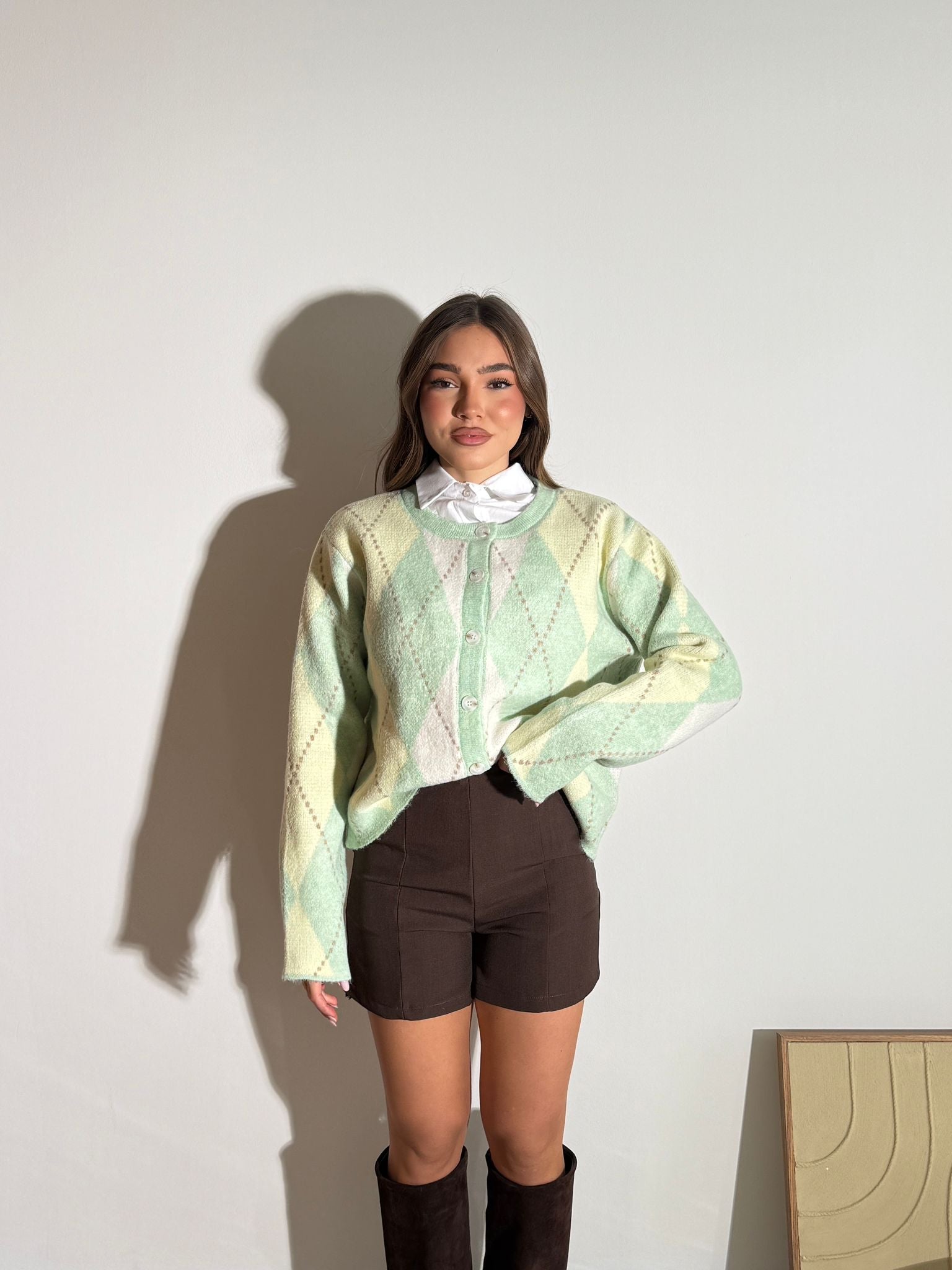 Cardigan da donna in lana rasata, con chiusura a bottoni, modello oversize, tessuto elasticizzato. Taglia unica, veste bene fino ad una taglia L/XL. La modella è alta 1,65 e pesa 52/53 kg.
