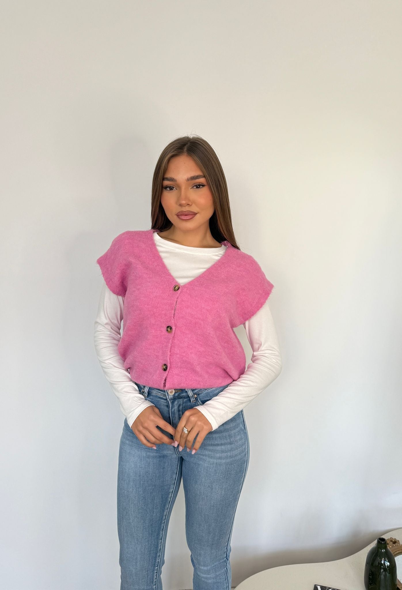 Gilet da donna in lana rasata con chiusura bottincini vestibilità over e vestirà bene fino a d una M/L
