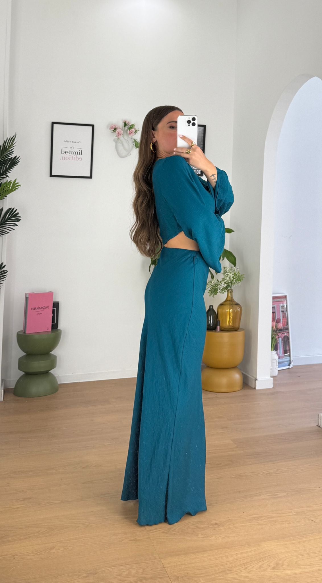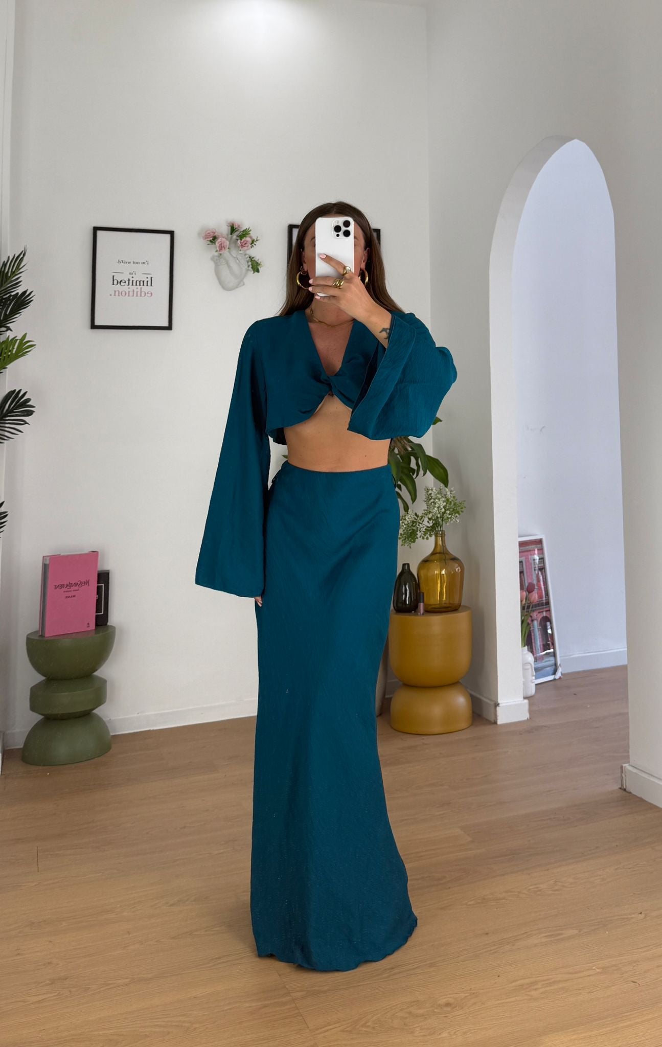Coordinato da donna in misto Lino composto blusa crop con manica a campana sul finale e gonna a sirena con cinturino compreso, vestirà bene fino ad una 44 piena
