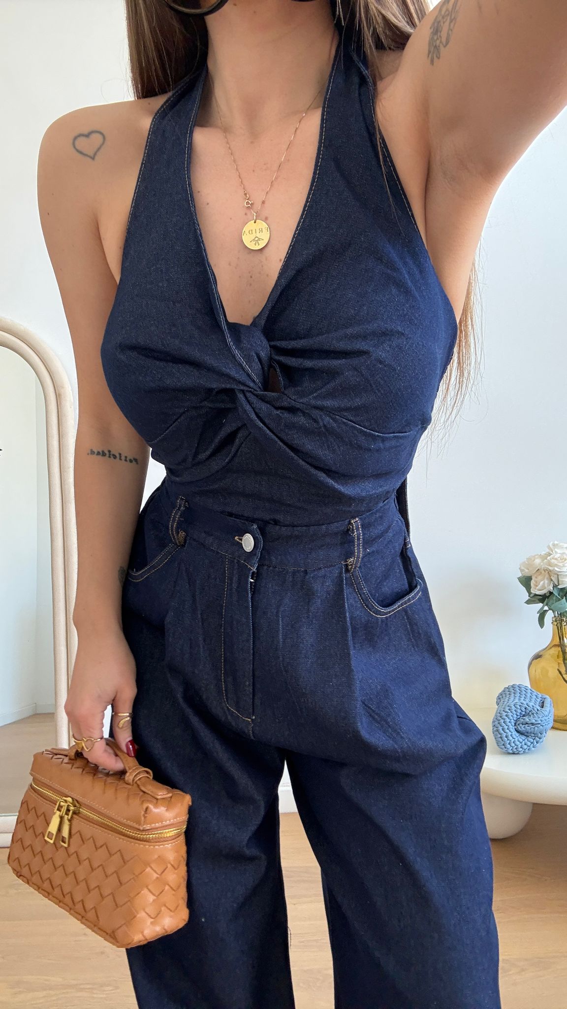 Coordinato da donna composto da top con coppe imbottite mentre il pantalone è a gamba larga con elastico sul retro in vita e vestirà bene fino ad una L