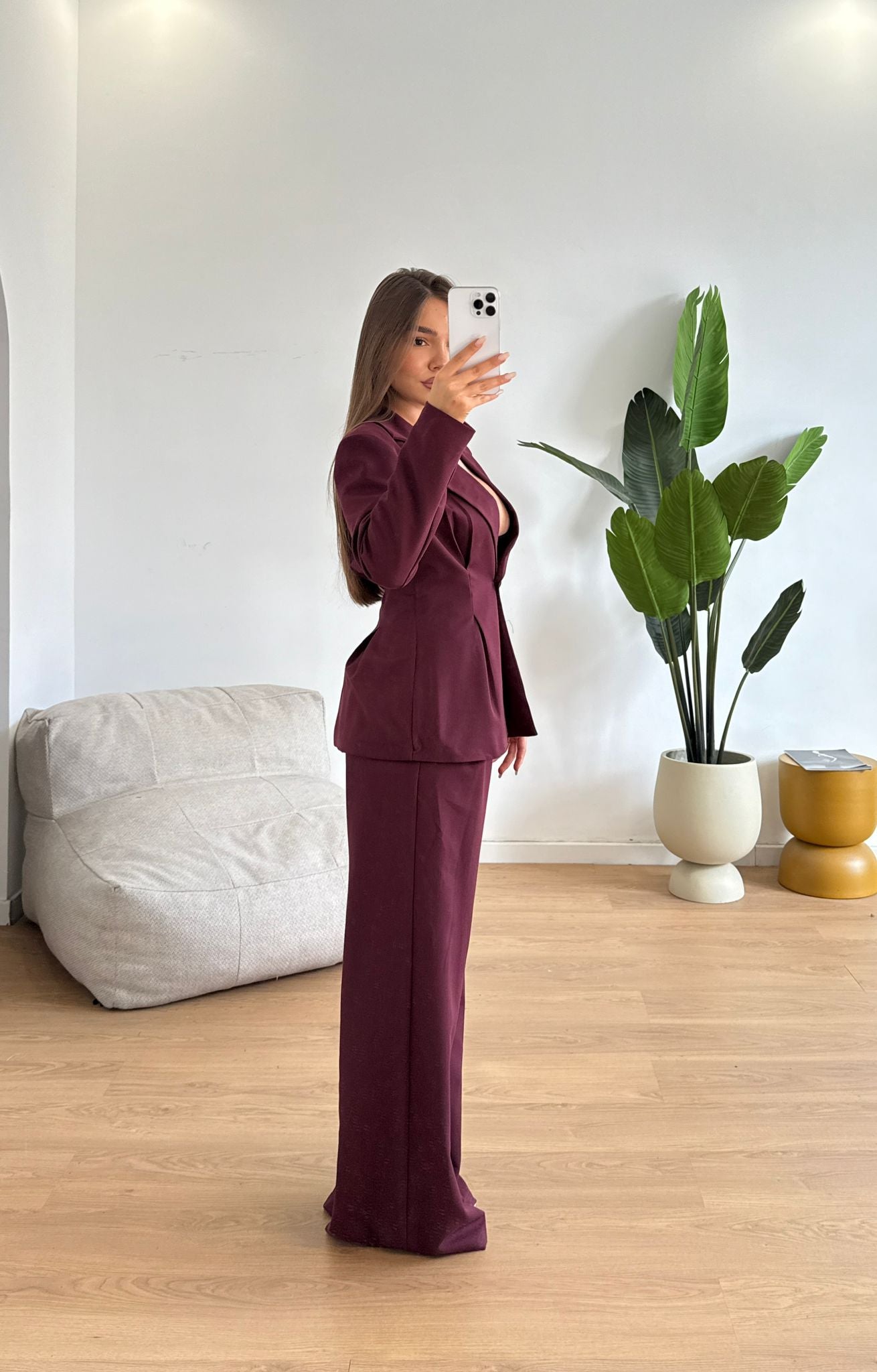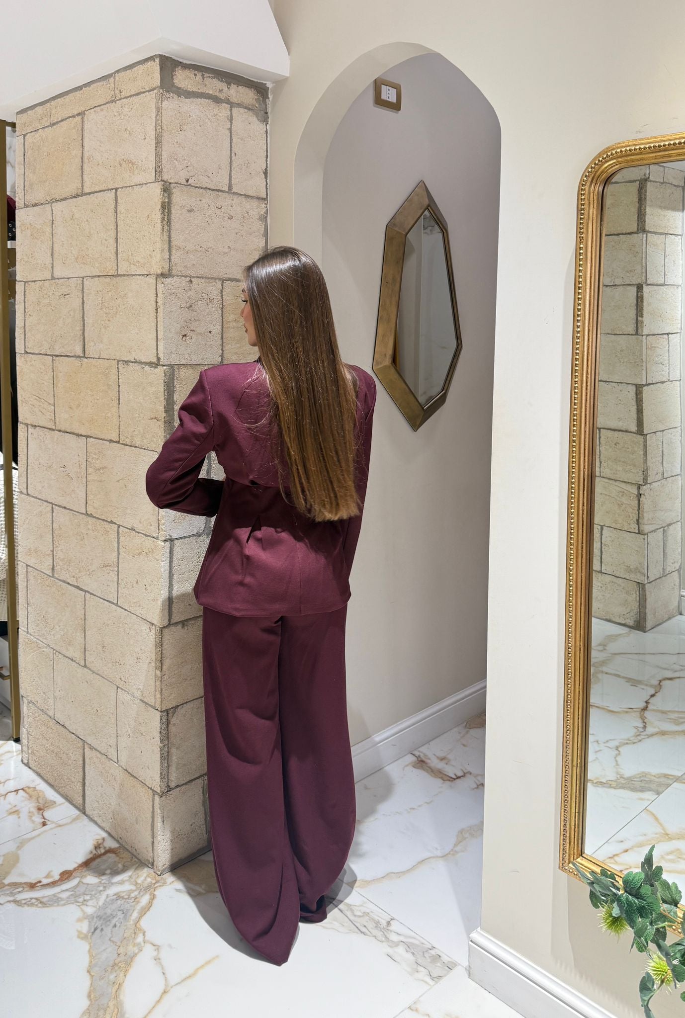 Coordinato da donna composto da giacca con spalline imbottite e pantalone con elastico in vita e vestirà bene fino ad una M/L