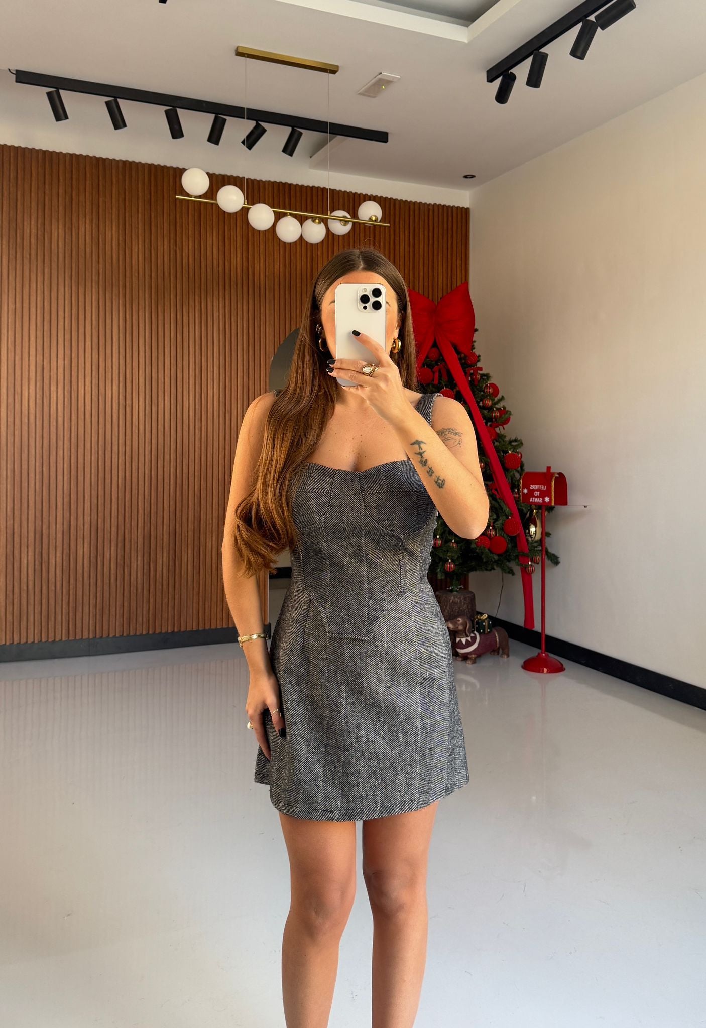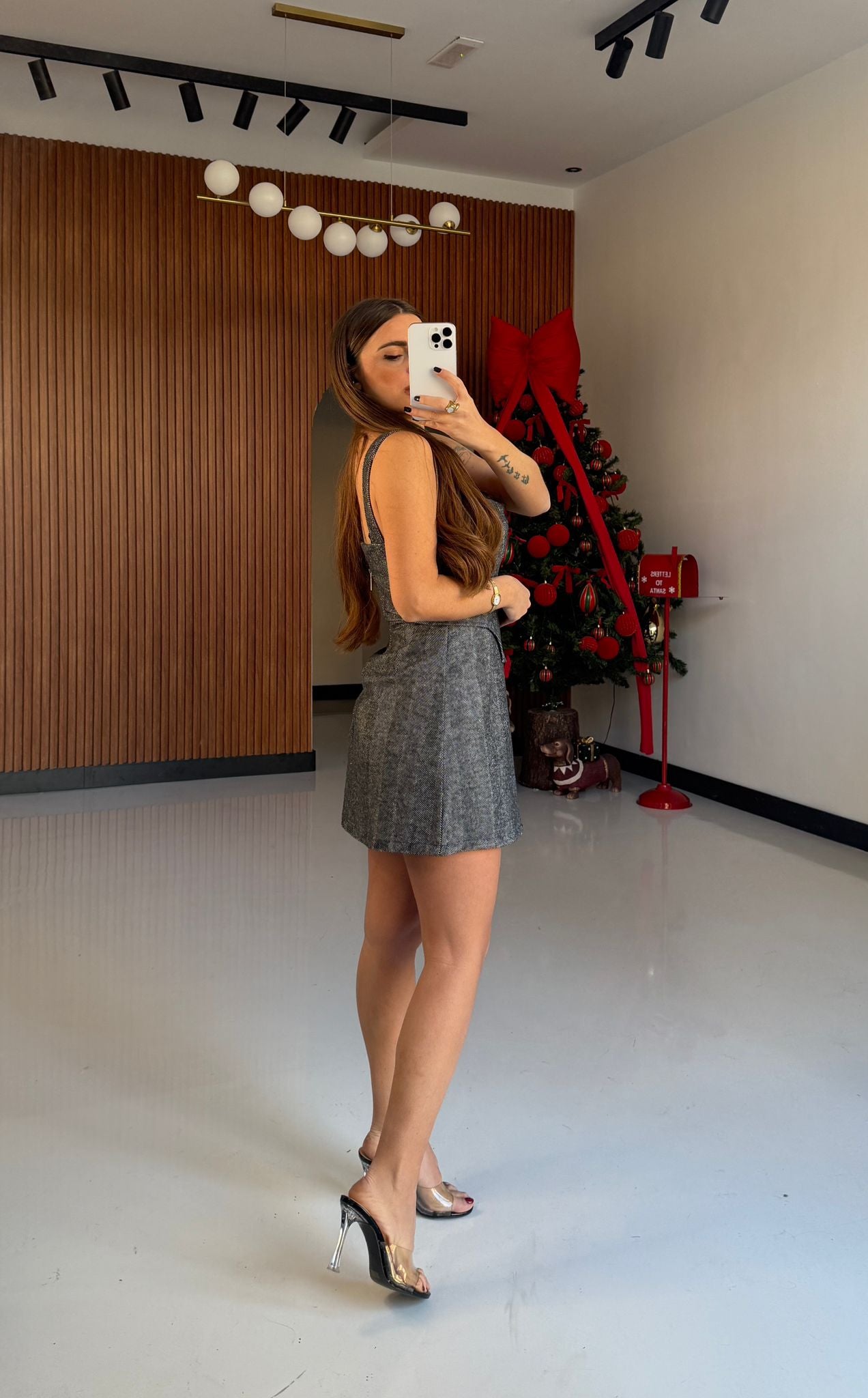 Coordinato da donna in tessuto franella composto da top con coppe imbottite e chiusura zip sul retro e gonna vita alta con chiusura in zip laterale, veste regolarmente la propria taglia e la modella indossa taglia S