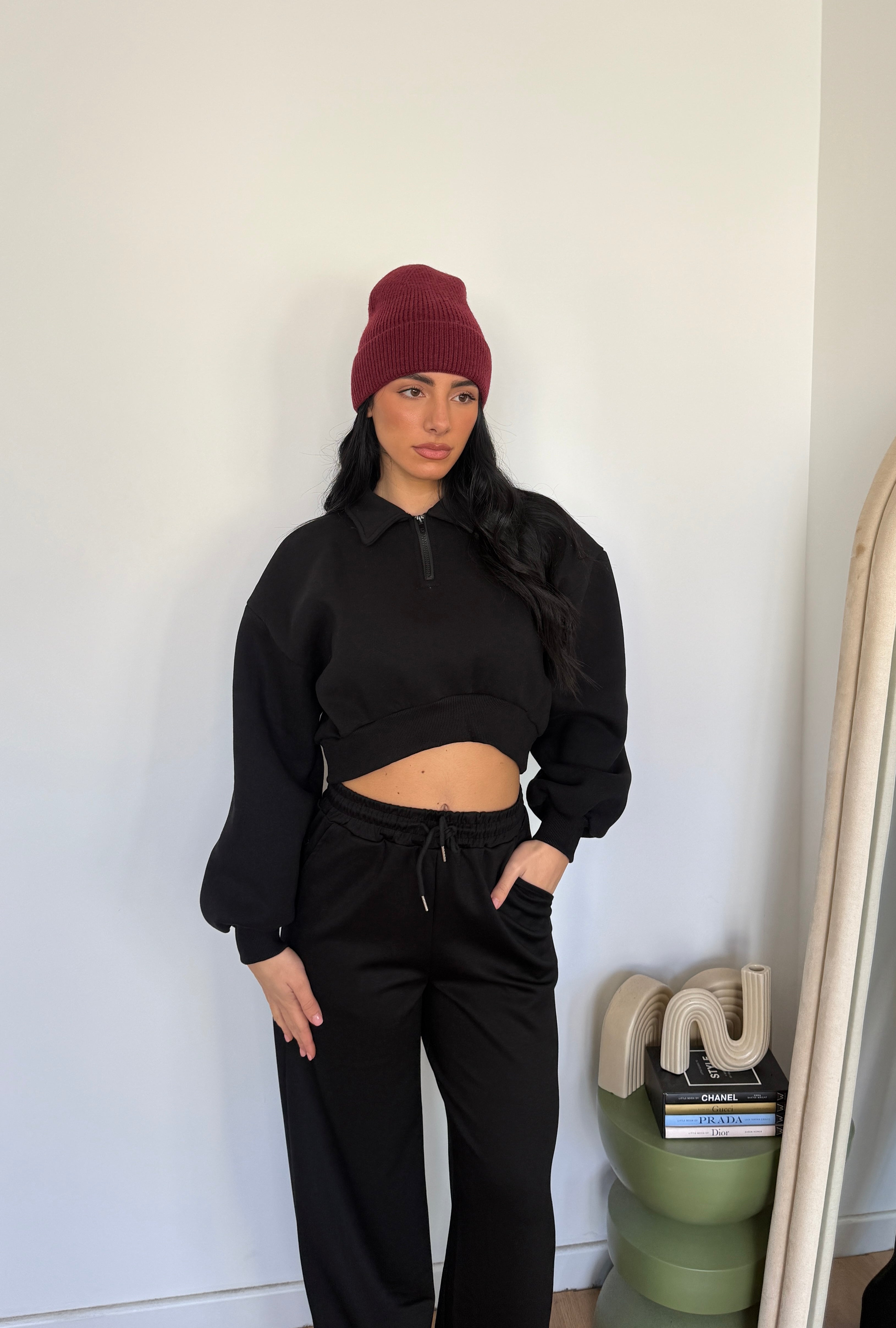 Felpa da donna crop felpata internamente con polsini, elastico in vita e cerniera sullo scollo. Taglia unica, veste bene fino ad una M piena.