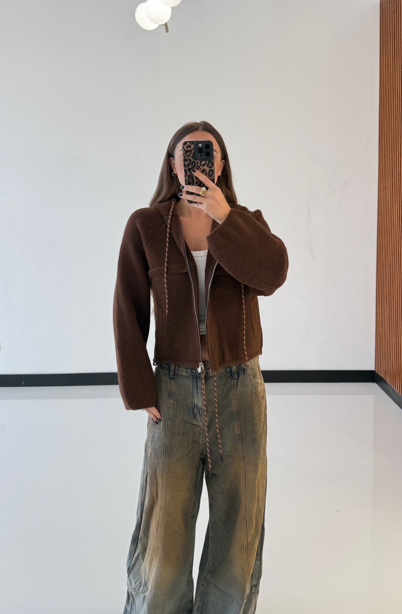 Felpa da donna in lana rasata con cappuccio e chiusura zip sul davanti, vestirà bene fino a d una M/L piena
