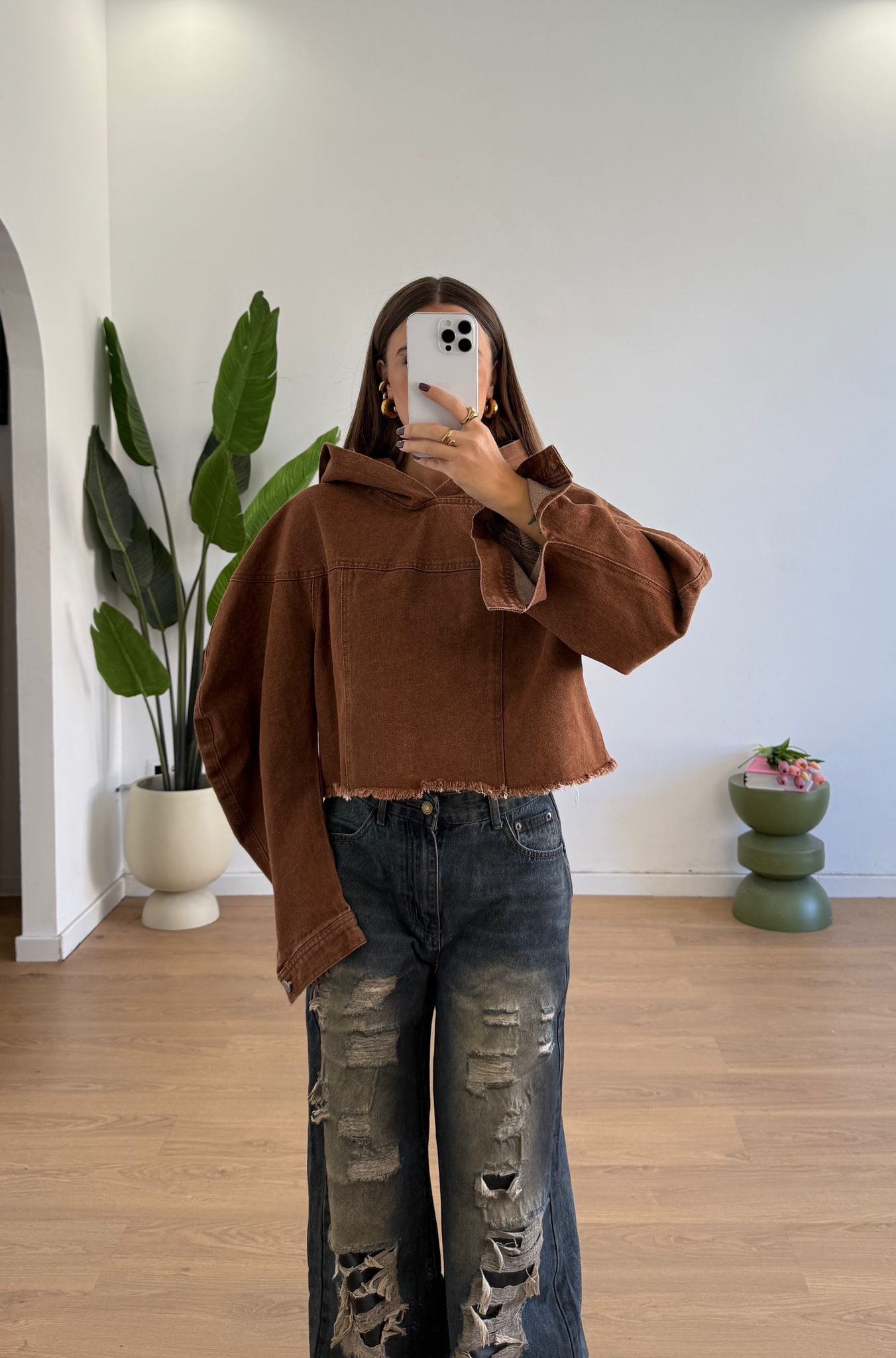 Felpa da donna crop con cappuccio, vestibilità oversize e vestirà bene fino ad una M/L
