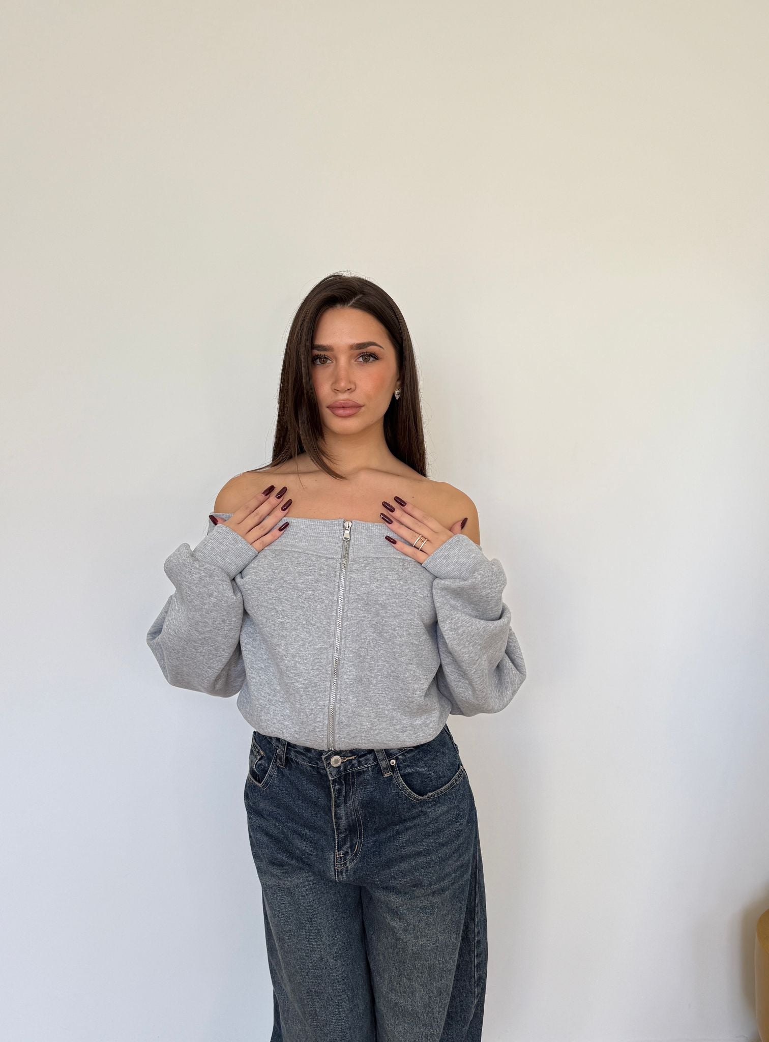 Felpa da donna scollo a barca con chiusura zip sul davanti, felpata internamente con polsini e vestiti da bene fino ad una M/L
