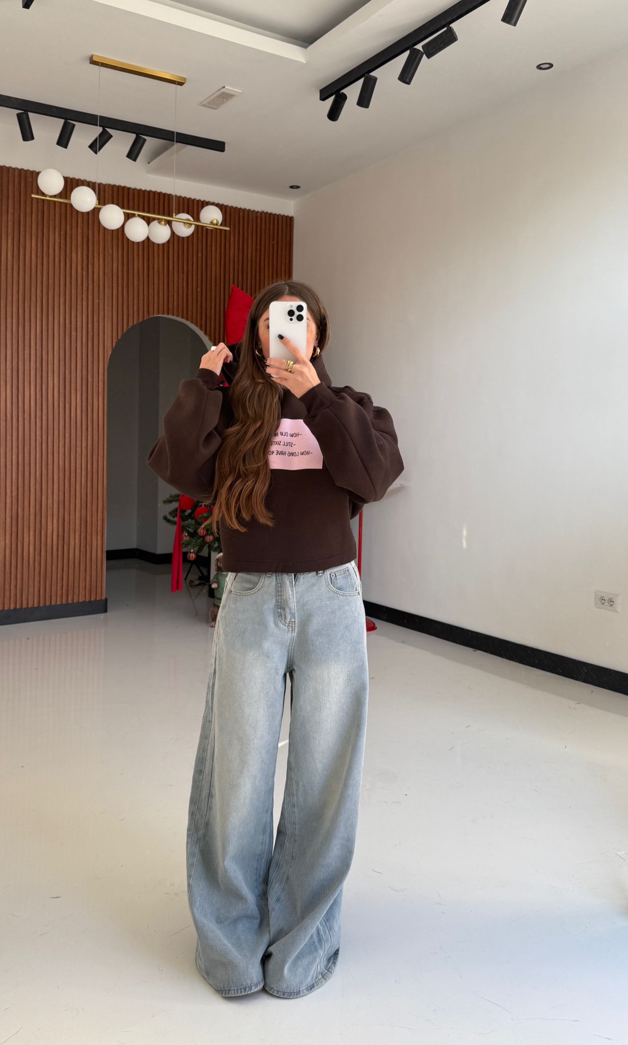 Felpa da donna crop con cappuccio e polsini, felpata internamente in pile e vestirà bene fino ad una M /L