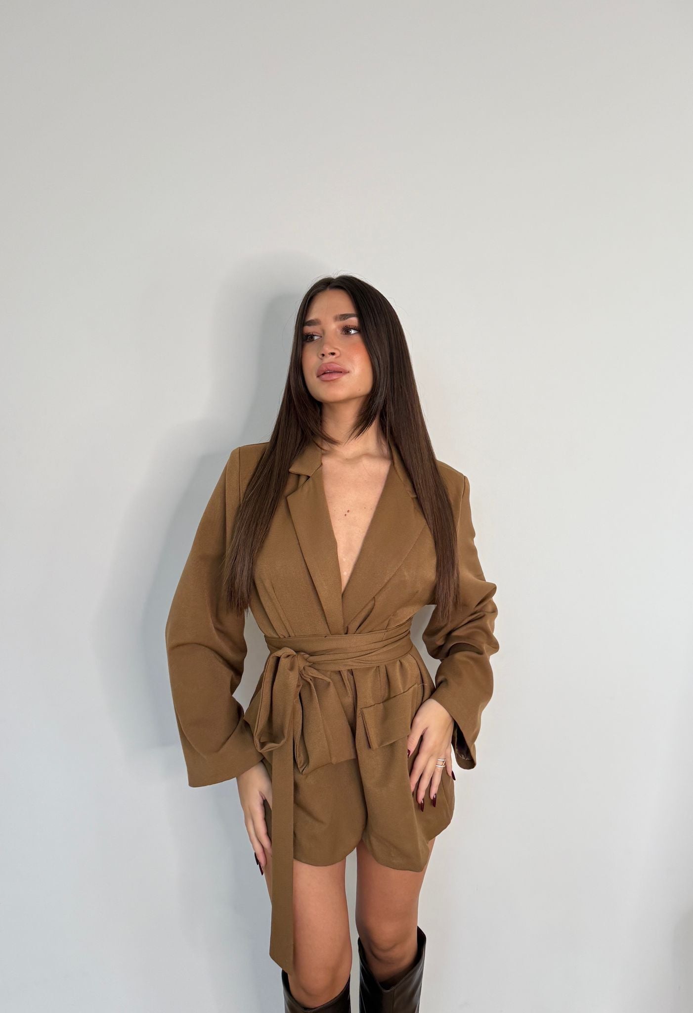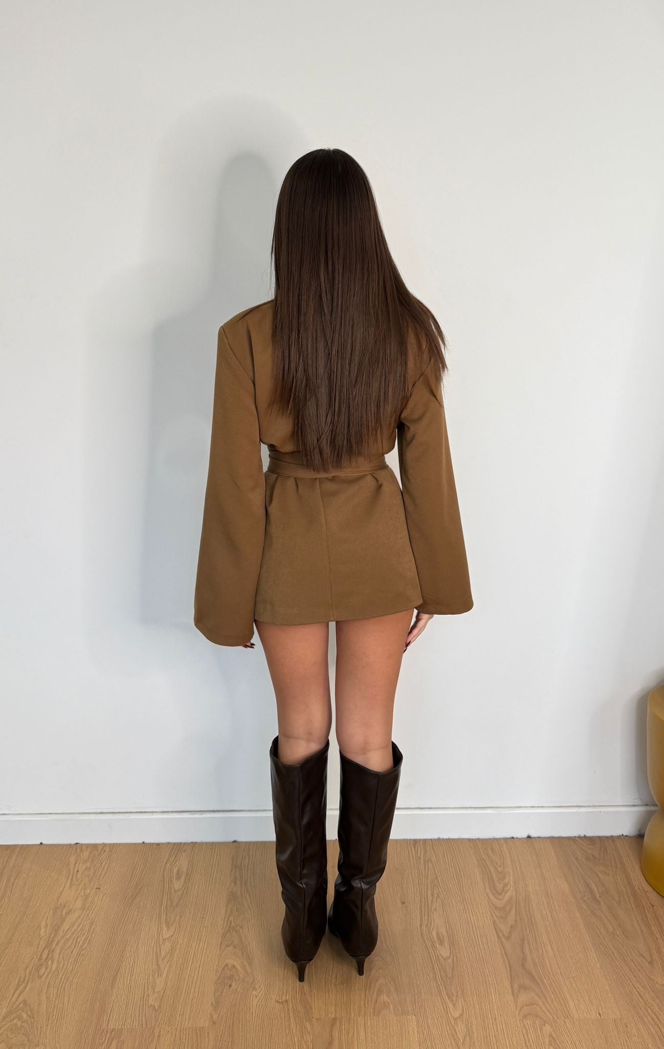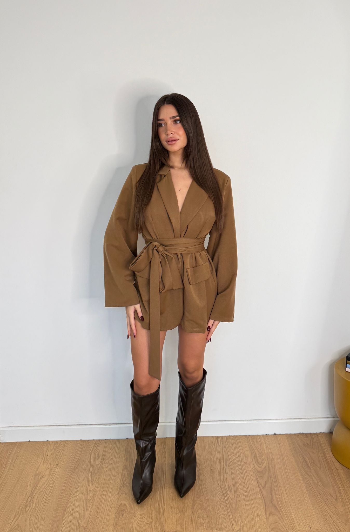 Blazer da donna oversize con chiusura bottoni, spalline imbottite e cintura inclusa. Vestibilità fino ad una 44/46