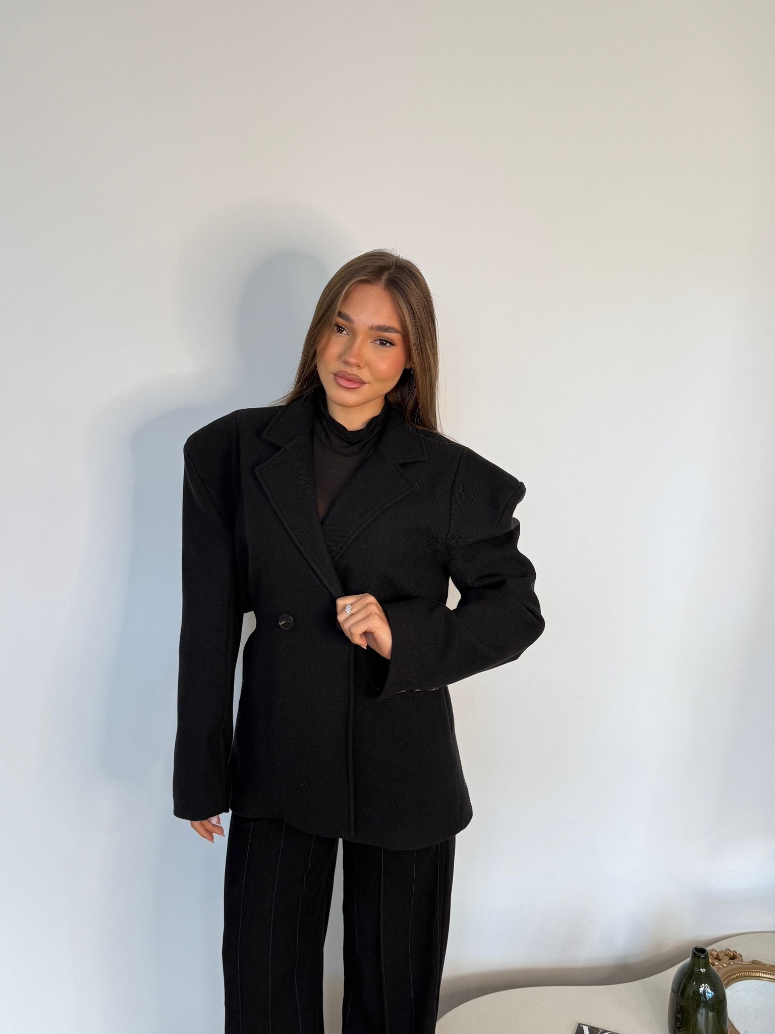 Cappottino da donna in panno con spalline imbottite, foderato internamente e vestibilità leggermente oversize, top quality e vestirà bene fino ad una M/L