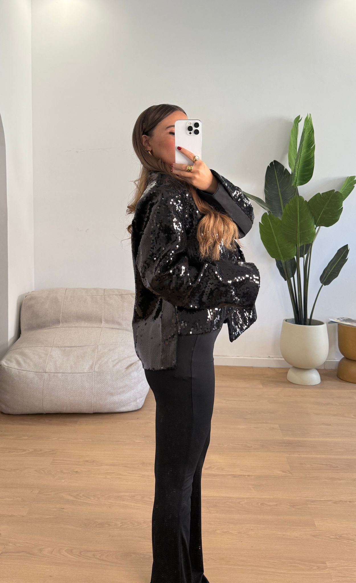 Giacca da donna in paillettes con spalline imbottite, foderata internamente e vestirà bene fino ad una 42 piena