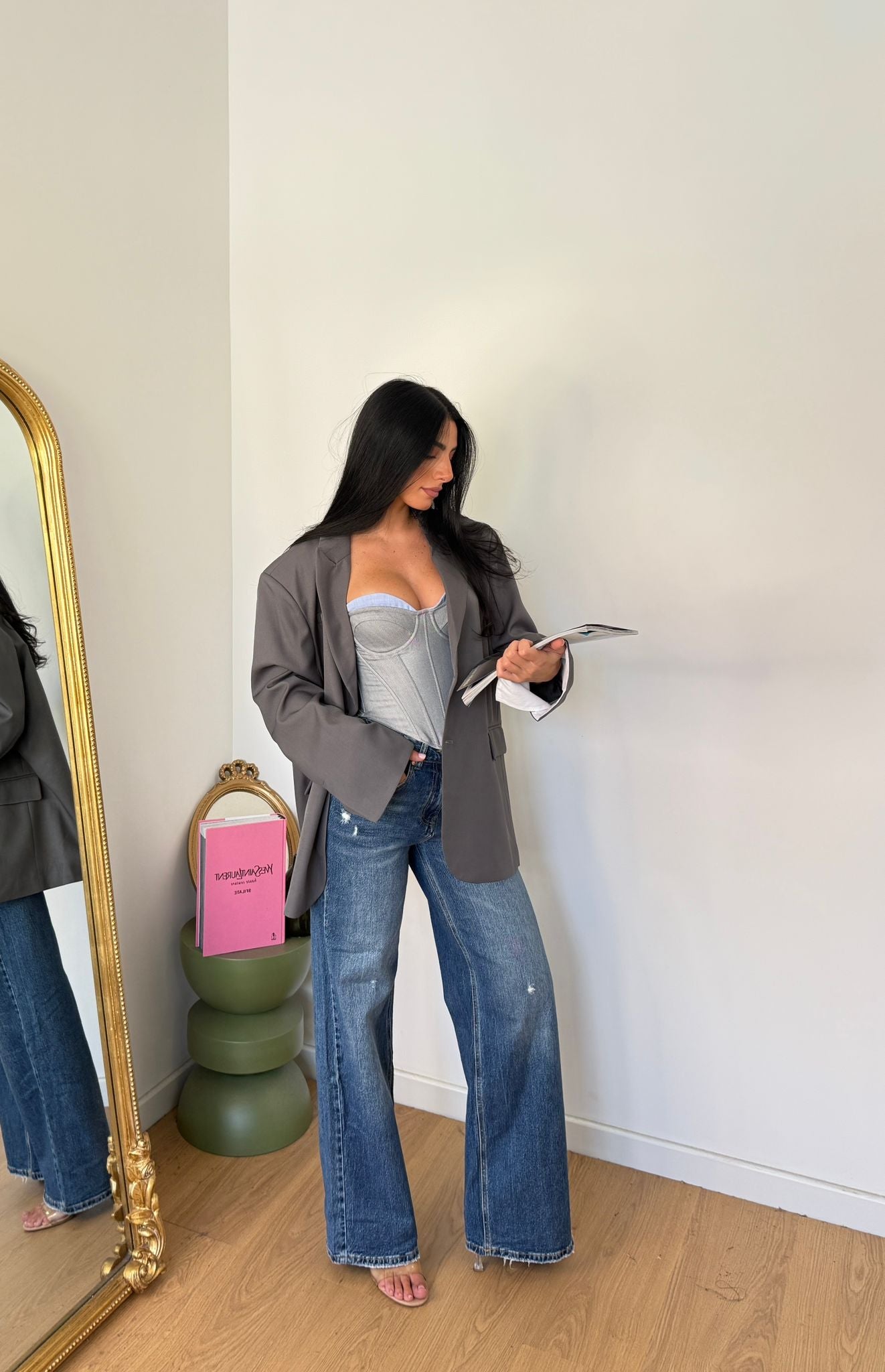 Giacca da donna con spalline imbottite, foderata internamente e vestibilita oversize e vestirà bene fino a d una M/L piena