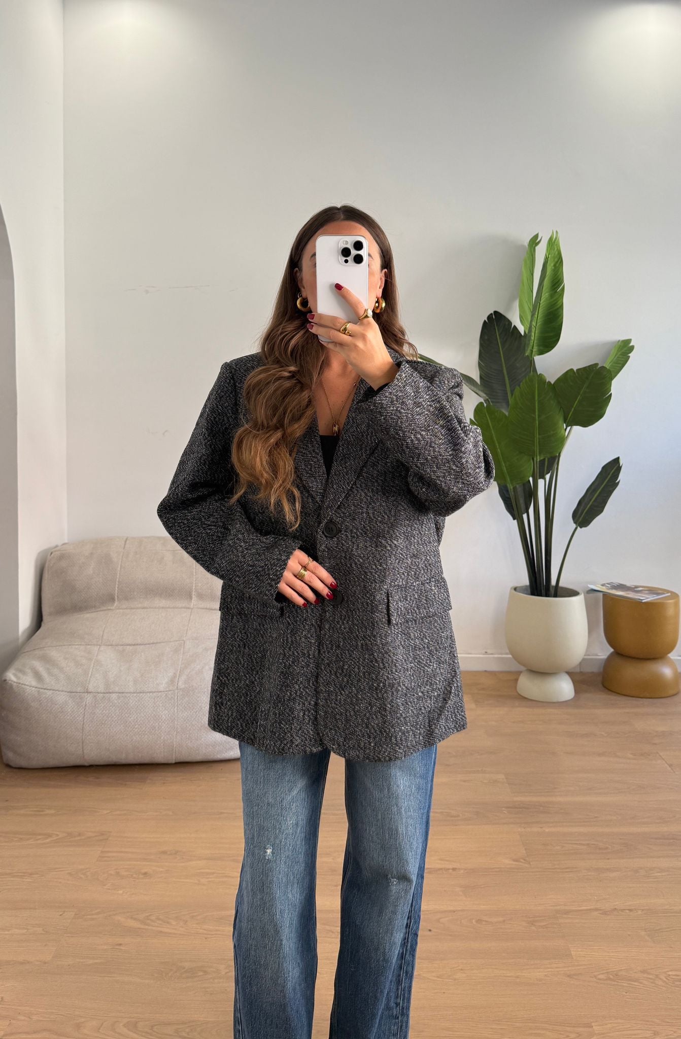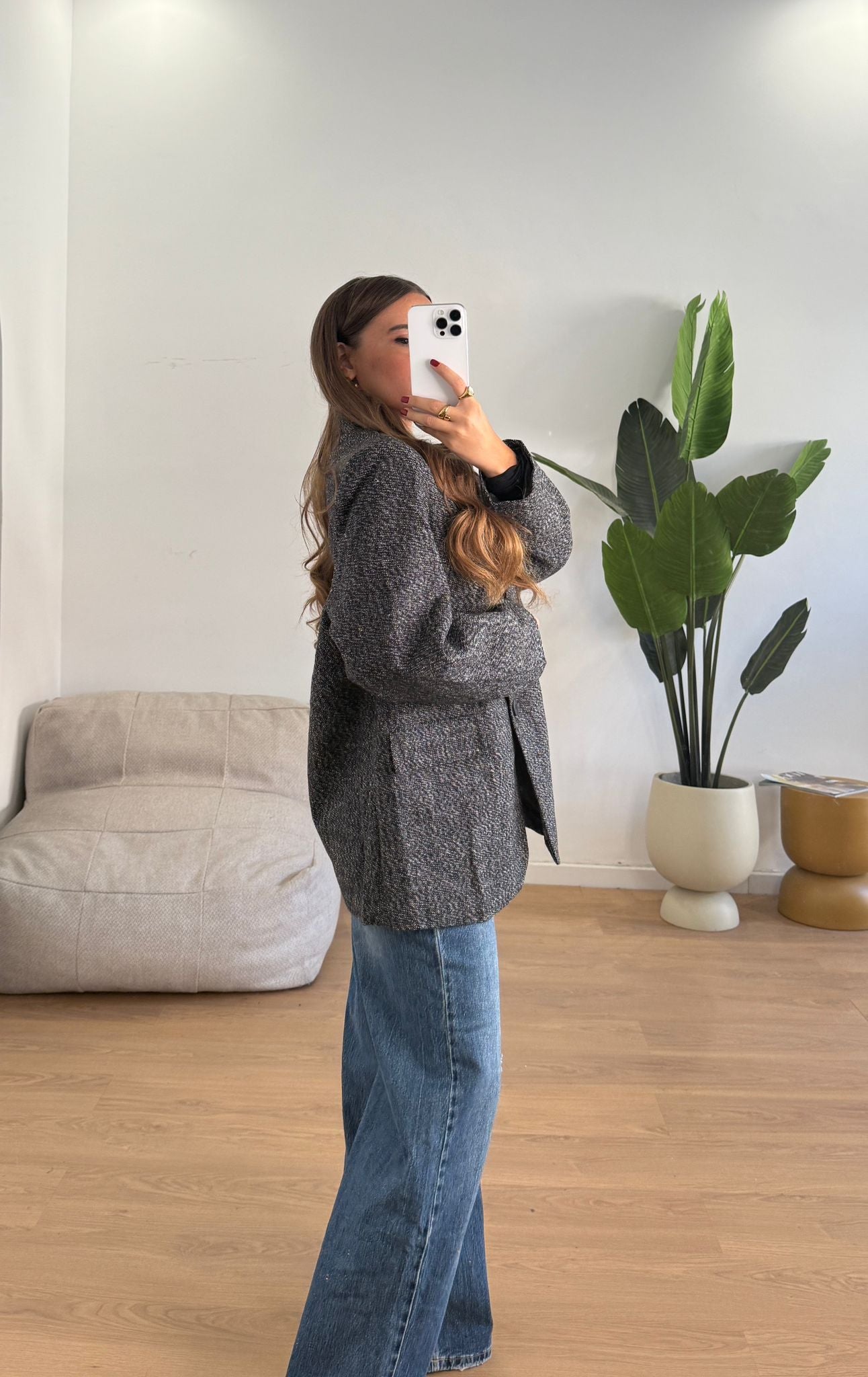 Giacca da donna con spalline imbottite, foderata internamente e vestibilita oversize e vestirà bene fino ad una M/L piena