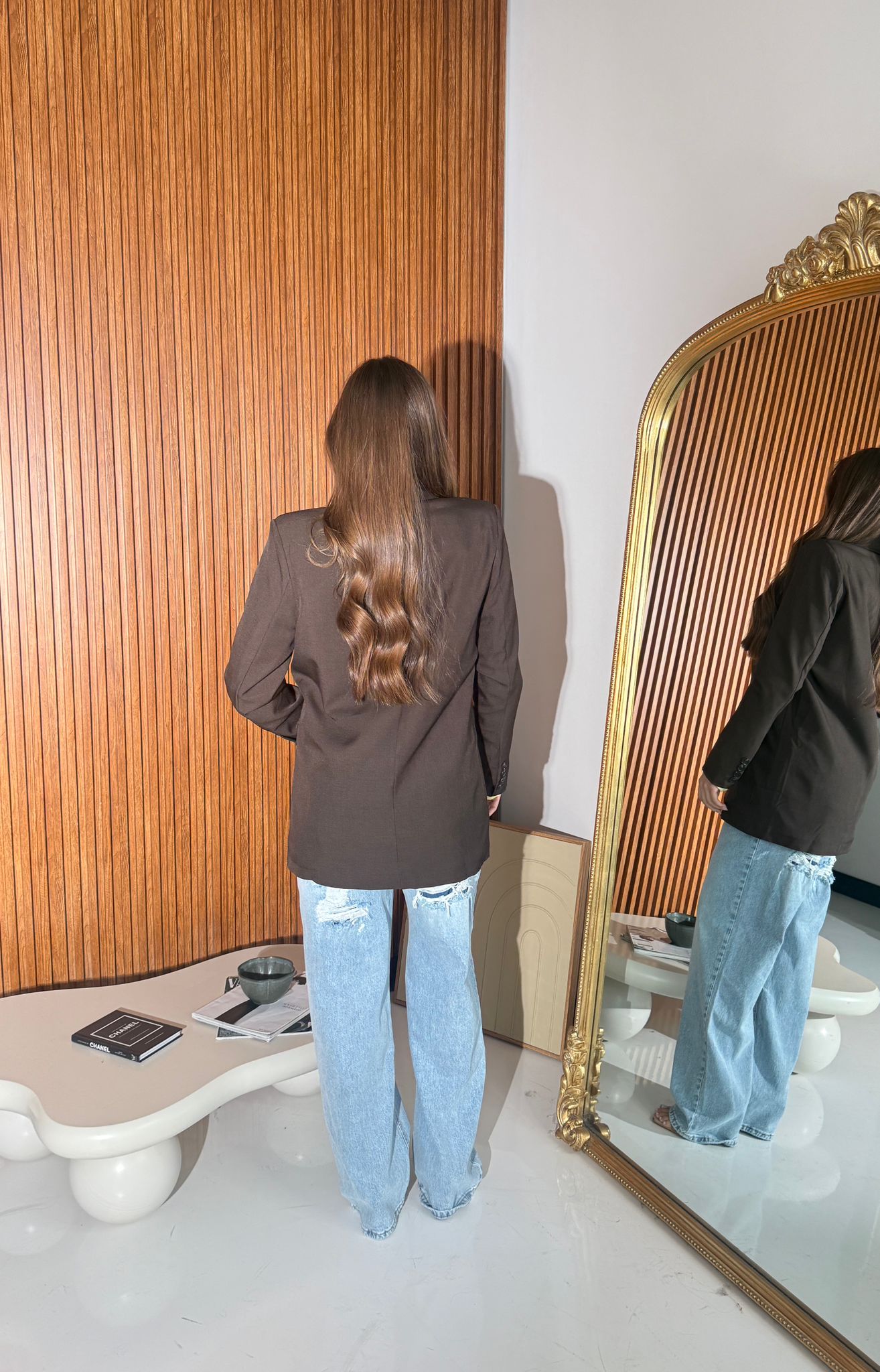 Giacca da donna in cotone con spalline strutturate, foderata internamente con chiusura a doppio petto con bottoncino sul davanti, lunghezza basic. Vestibilità leggermente oversize e vestirà bene fino ad una M/L, la modella è alta 1,65 e pesa 52/53 KG.