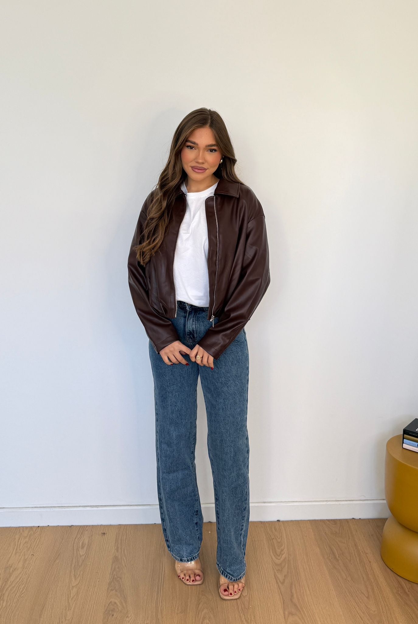 Giubbino da donna in ecopelle foderato internamente, top quality e veste regolarmente la propria taglia e la modella indossa taglia S/M