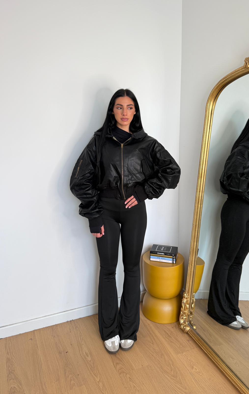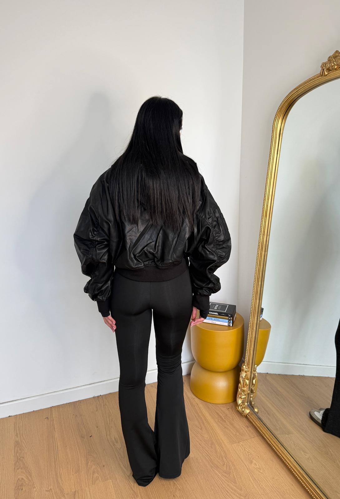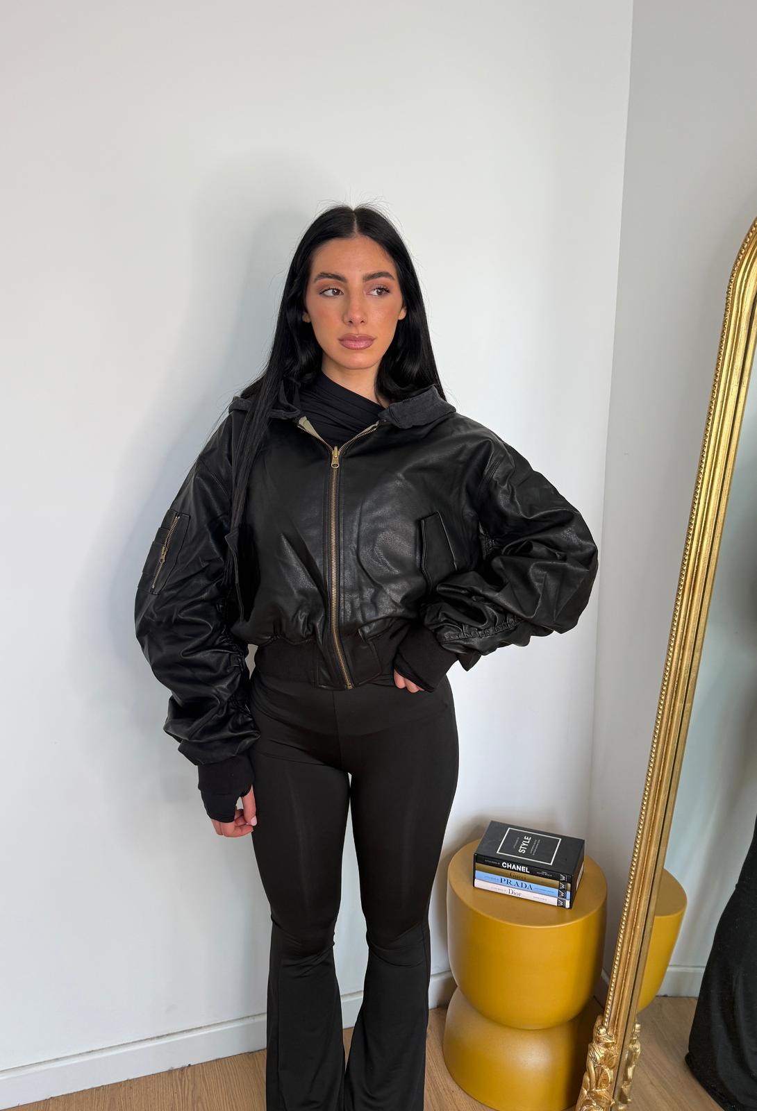 Giubbino da donna in ecopelle top quality, foderato internamente con polsini e veste regolarmente la propria taglia e la modella indossa taglia S
