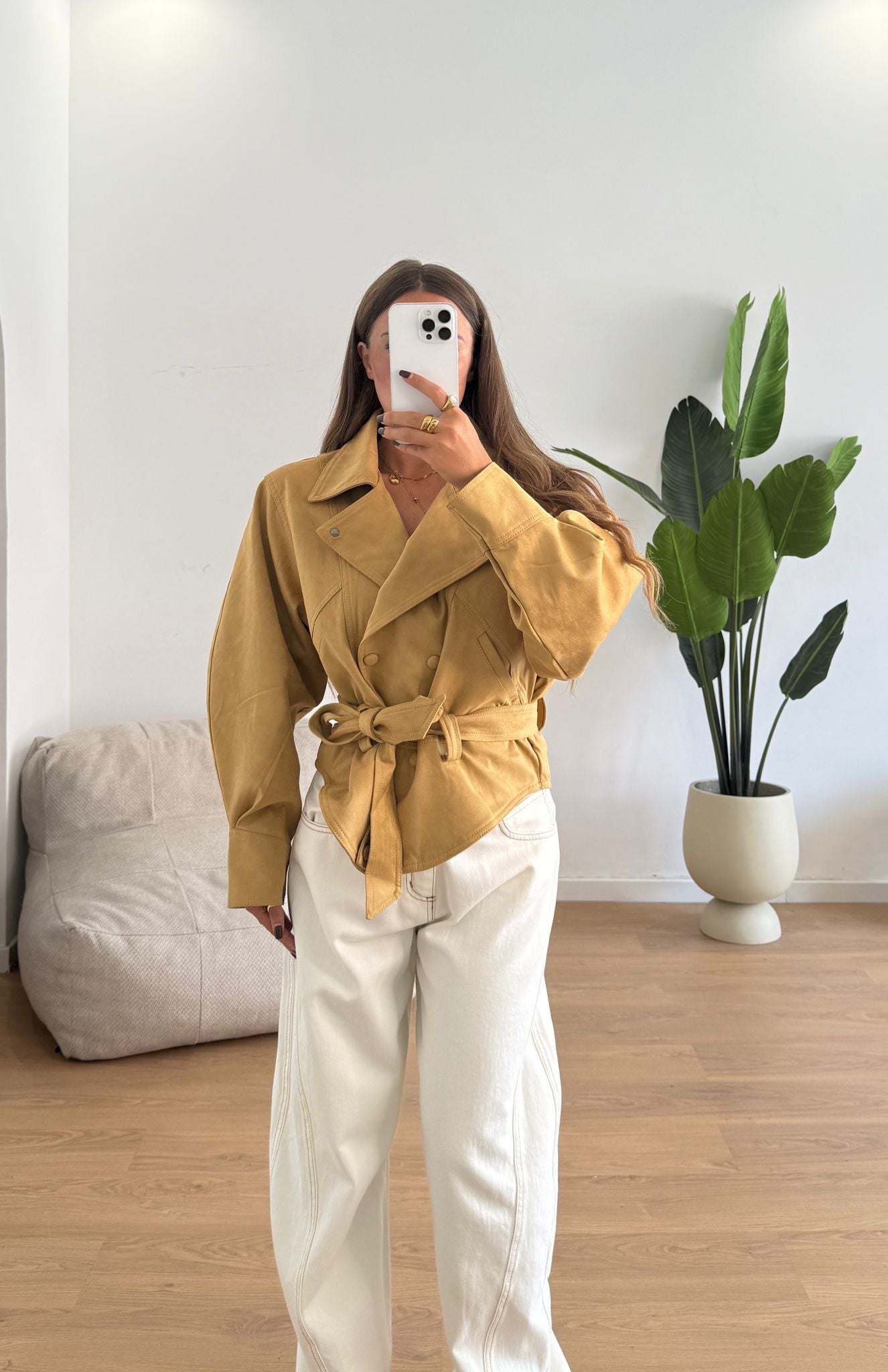 Giubbino in camoscio, foderato internamente, vestirà bene fino a taglia L