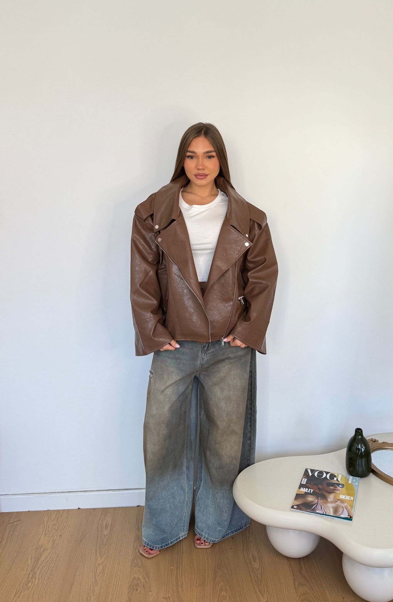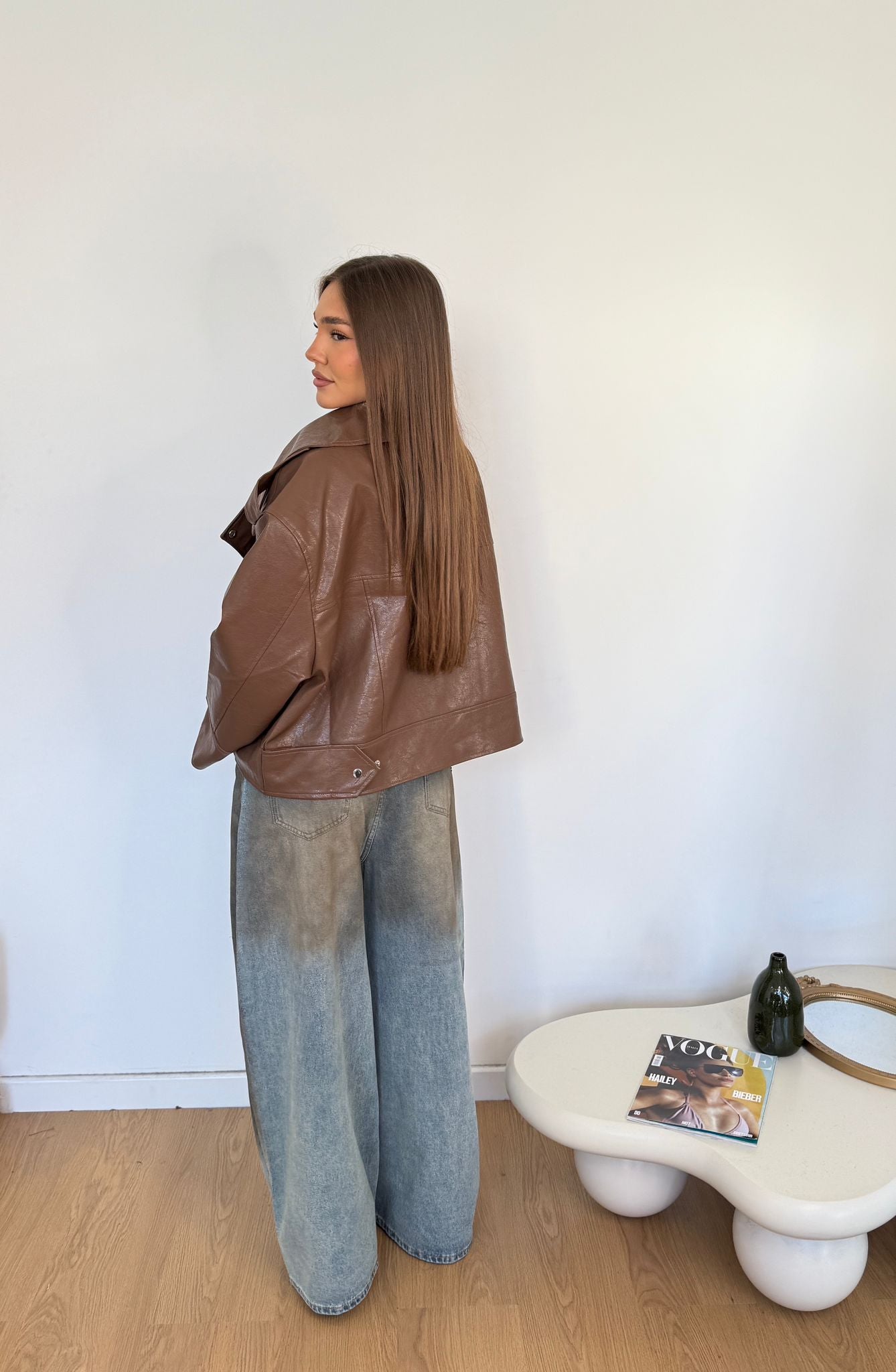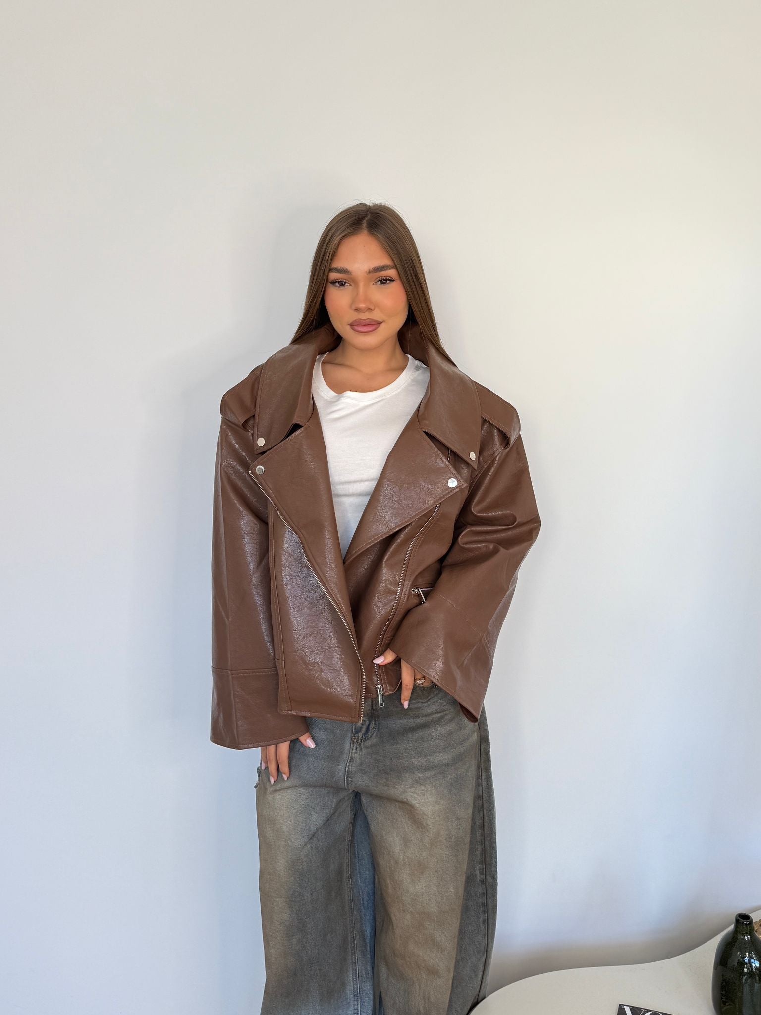 Giubbino da donna in ecopelle top quality, foderato internamente, vestibilità oversize e vestirà bene fino ad una M/L piena