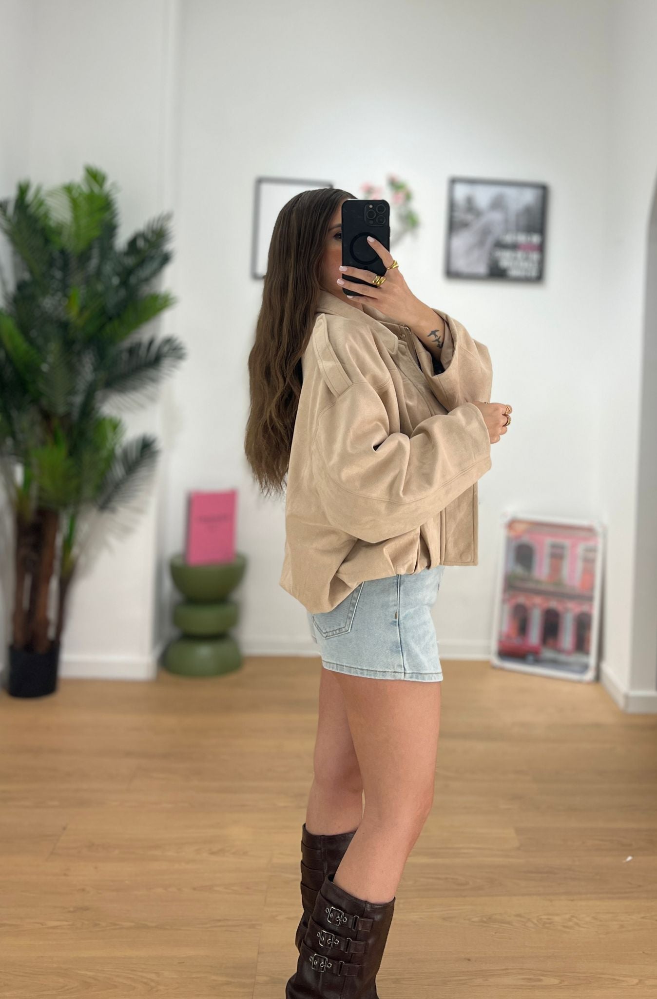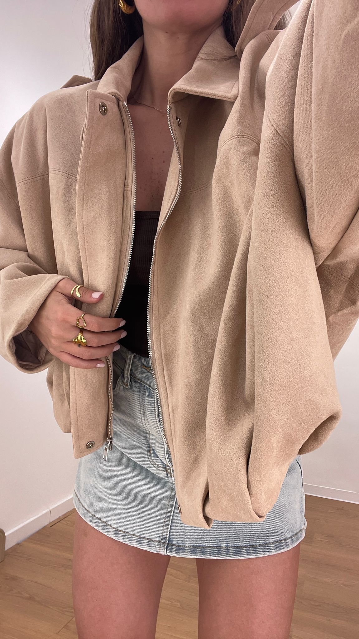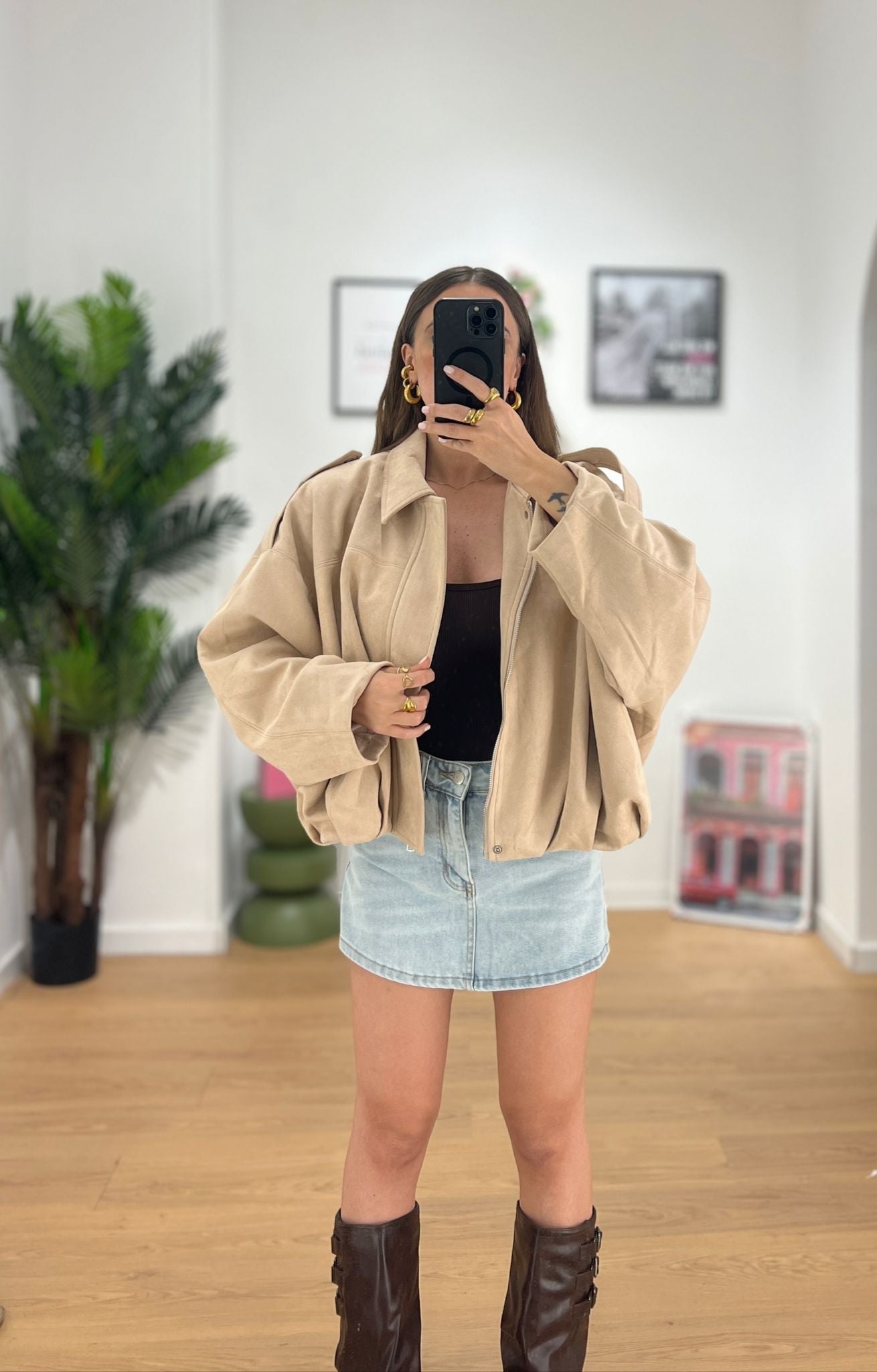 Giubbino da donna top quality foderato internamente con chiusura zip sul davanti, calzata oversize e Giusy indossa taglia S