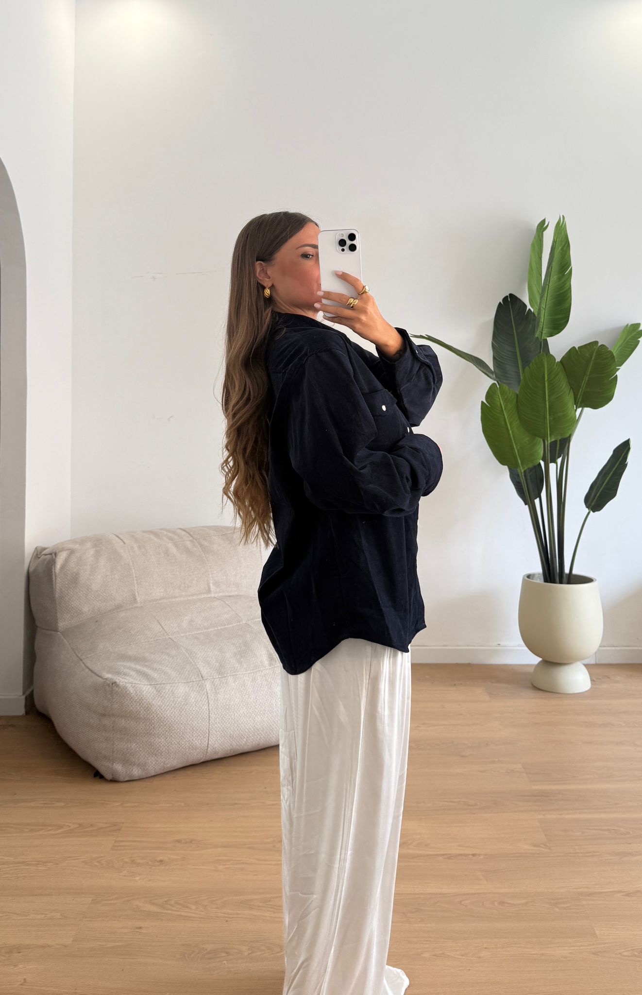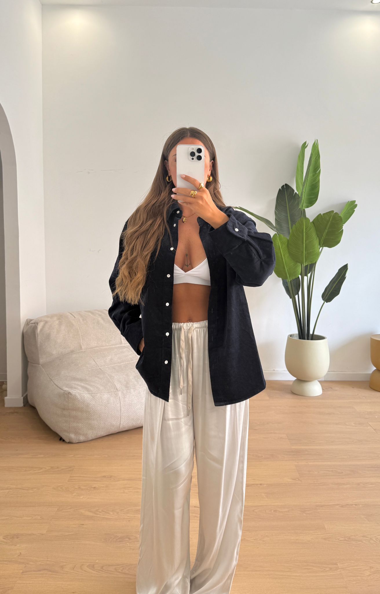 Camicia da donna con chiusura bottincini sul davanti e veste regolarmente la propria taglia e la modella indossa taglia S