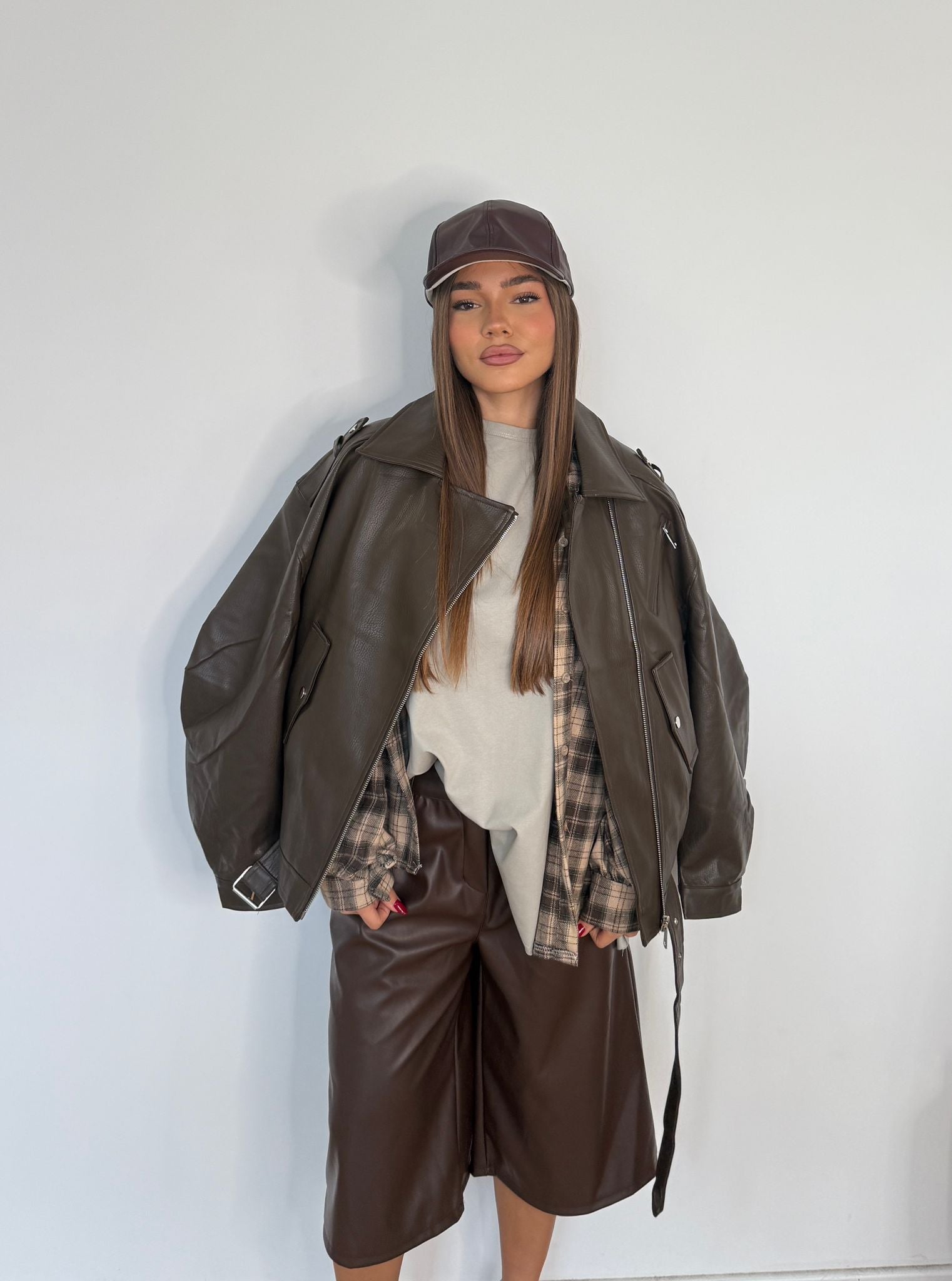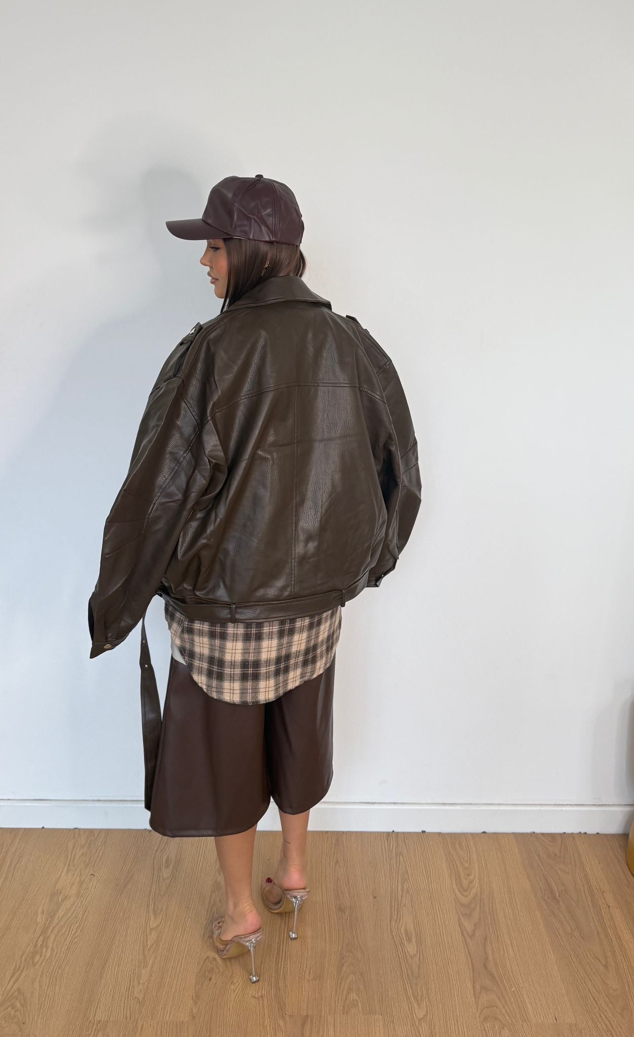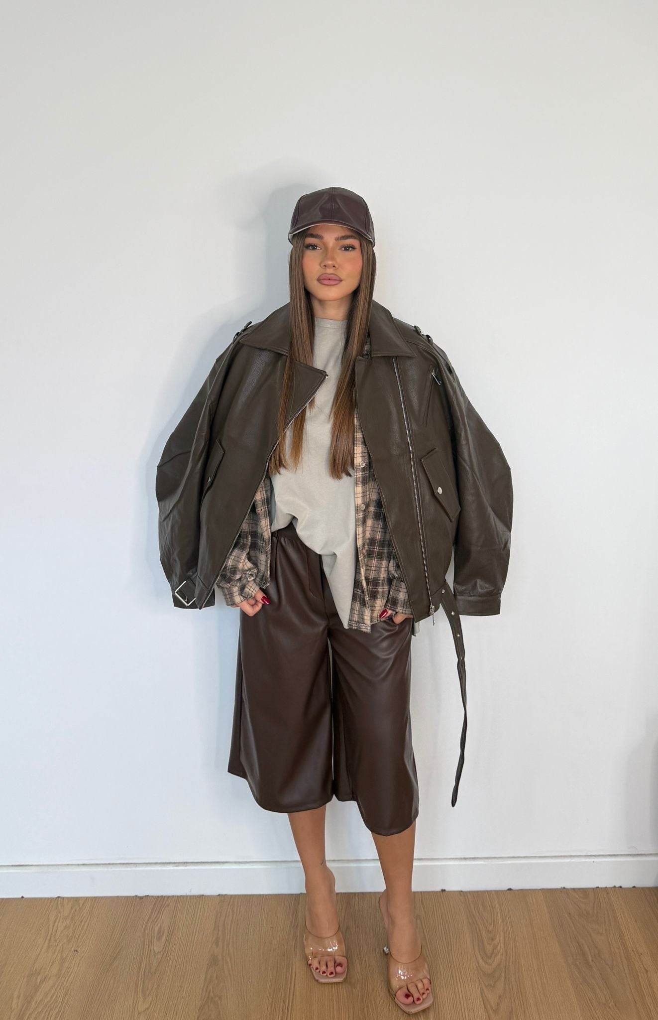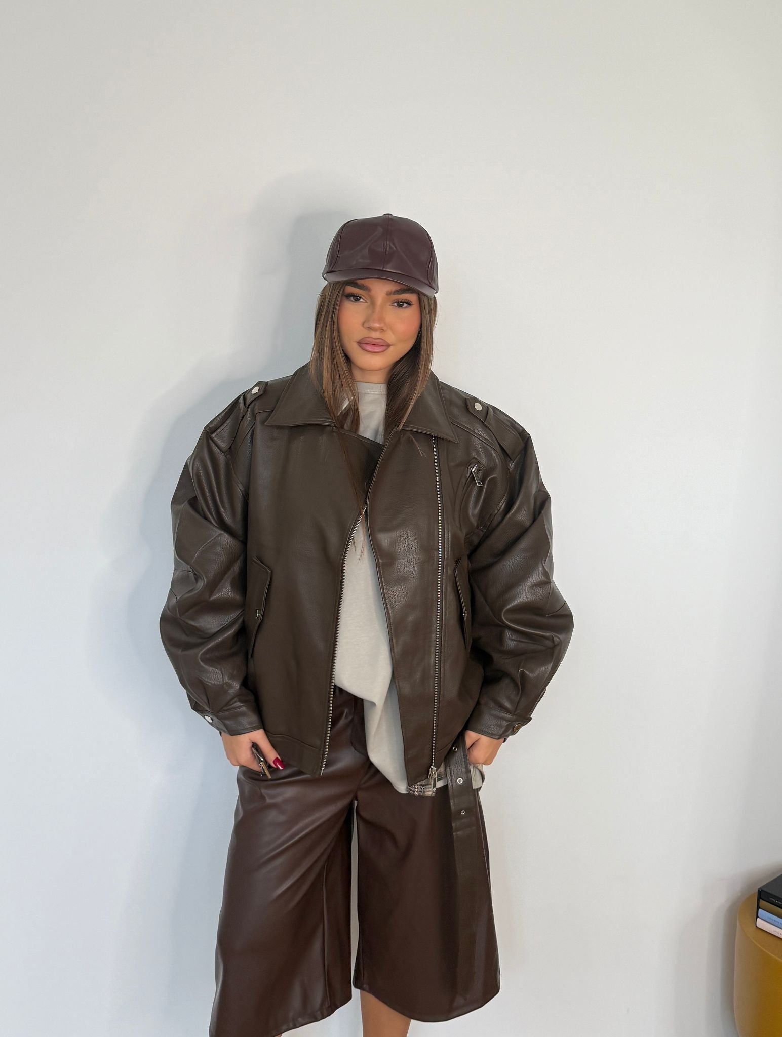 Chiodo in ecopelle, vestibilità oversize, manica a sbuffo con chiusura zip e vestirà bene fino ad una L/XL