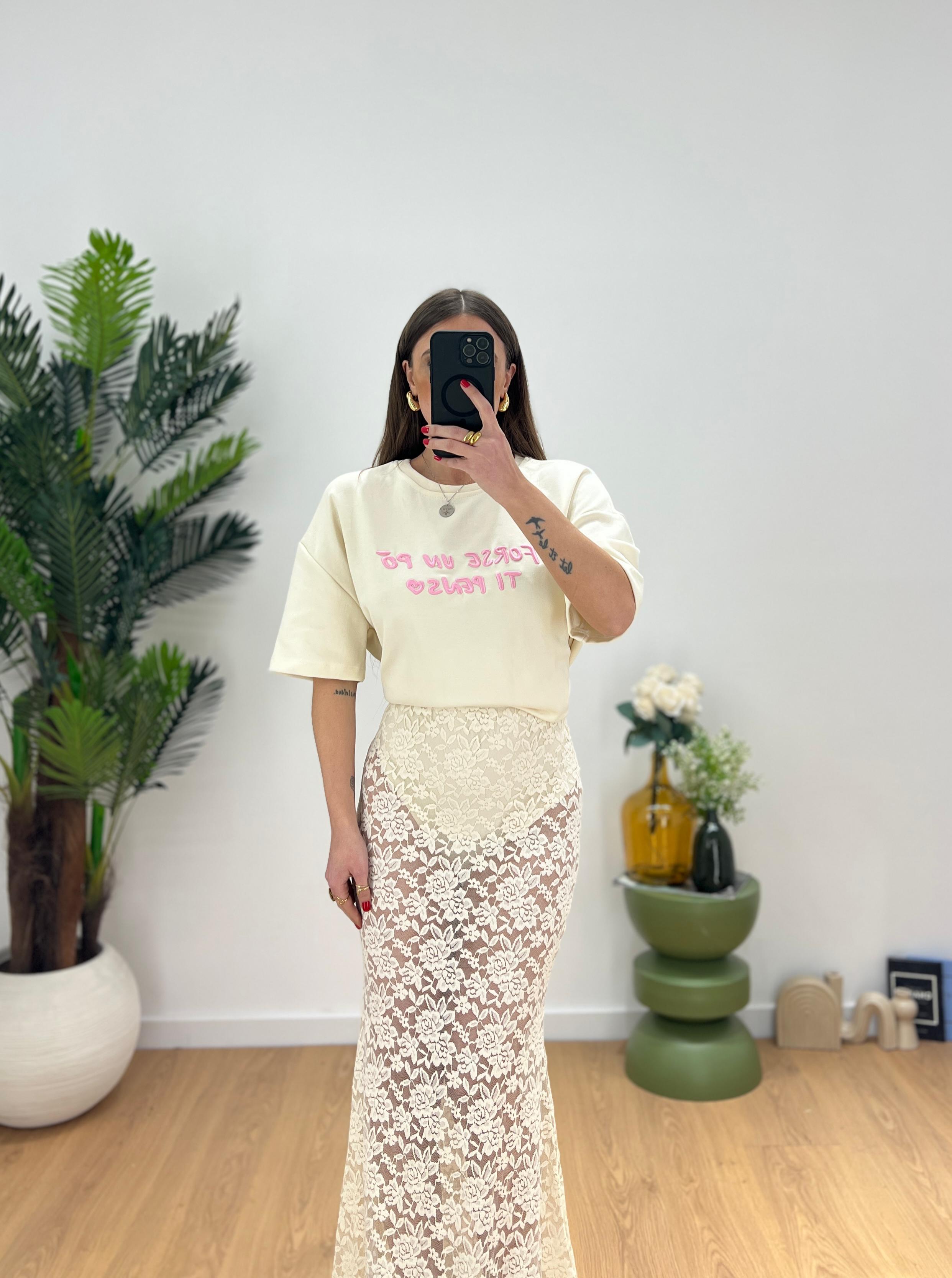Gonna da donna cin pizzo con elastico in vita interno e coulotte compresa, tessuto elasticizzato ma veste regolarmente la propria taglia e giusy indossa taglia S