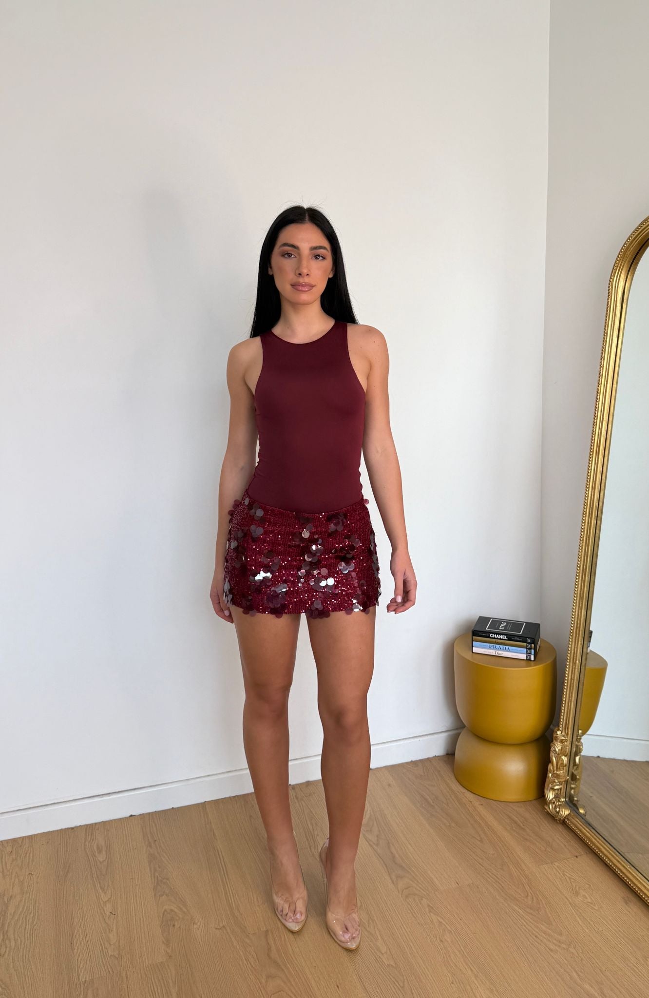 Gonna da donna con paillettes foderata internamente, tessuto elasticizzato e veste bene la propria taglia, la modella indossa taglia XS