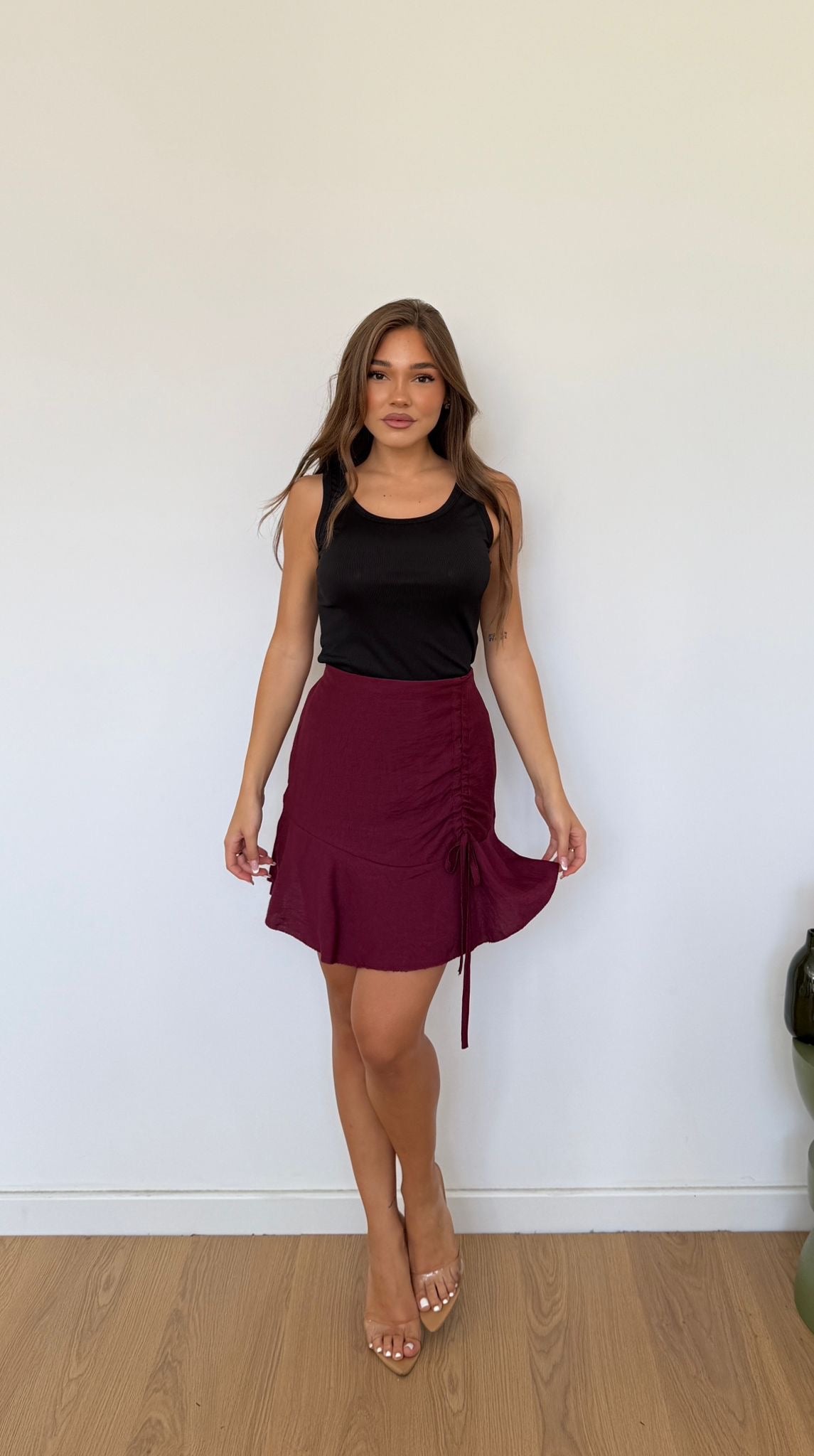 Gonna da donna in simil lino, con elastico in vita. Taglia unica, veste bene fino ad una M/L.