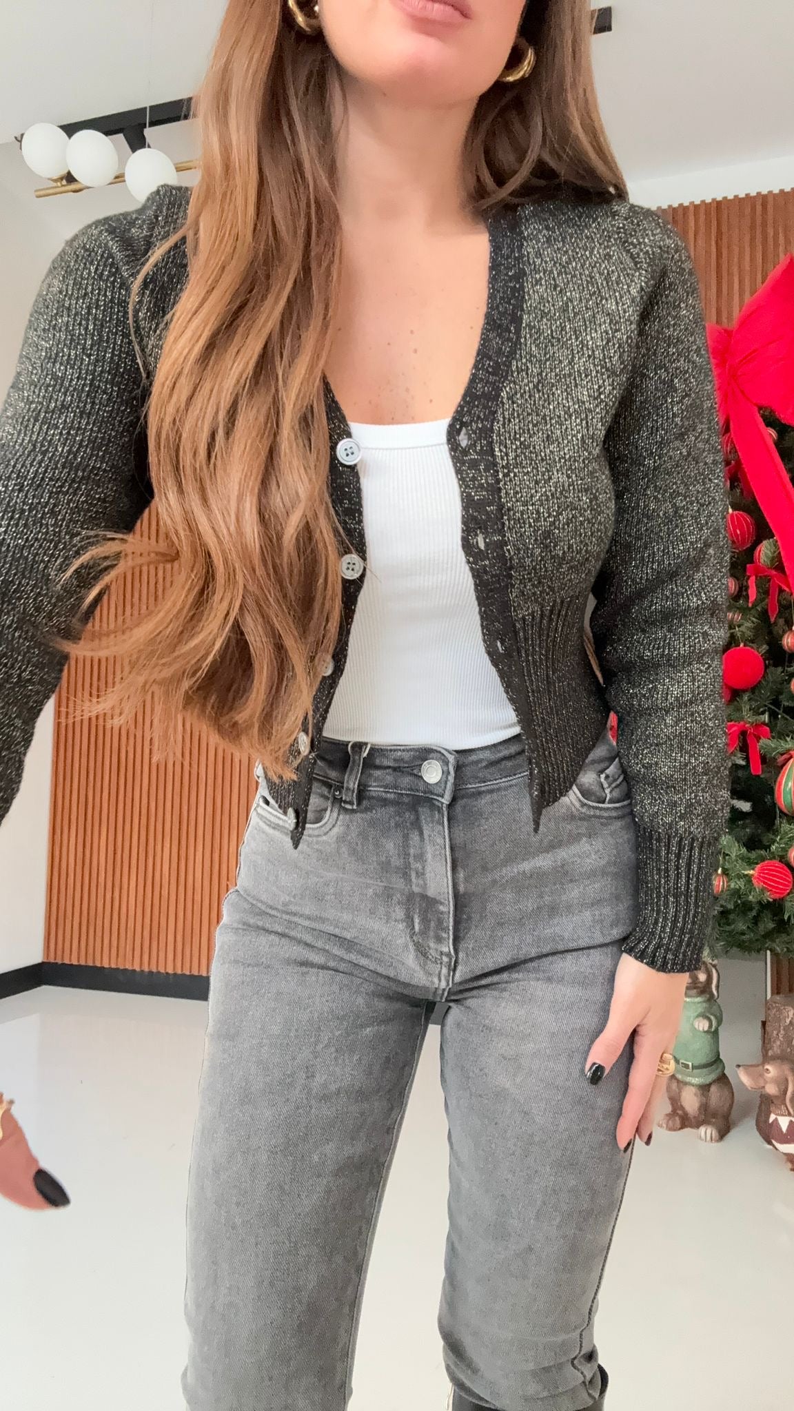 Maglioncino da donna, tessuto elasticizzato, con bottoncini sul davanti.Taglia unica, veste bene fino ad una taglia 44/46.