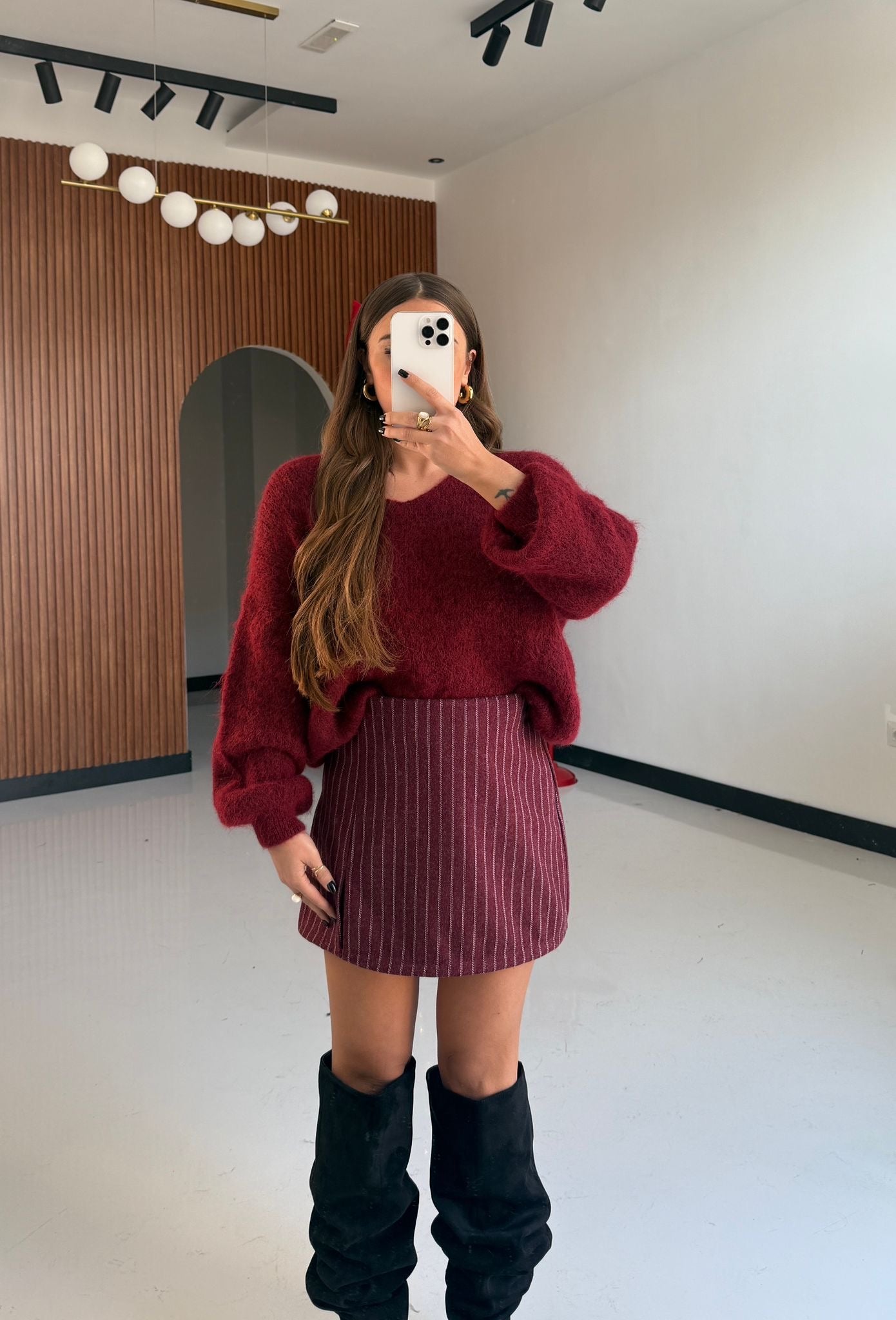 Maglione da donna in lana rasata con polsini e manica leggermente a sbuffo, vestibilità oversize e tessuto elasticizzato, vestirà bene fino ad una M/L piena
