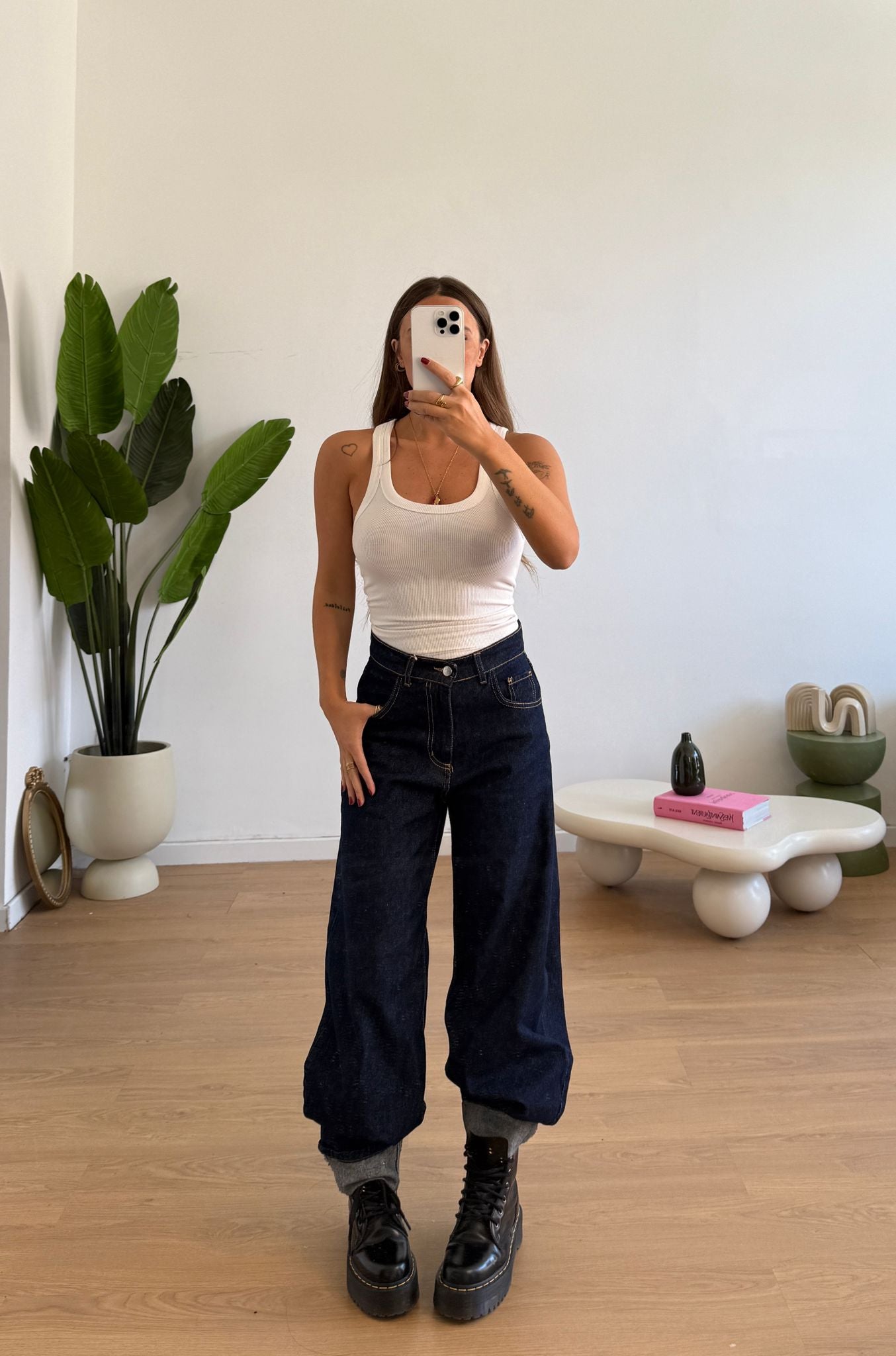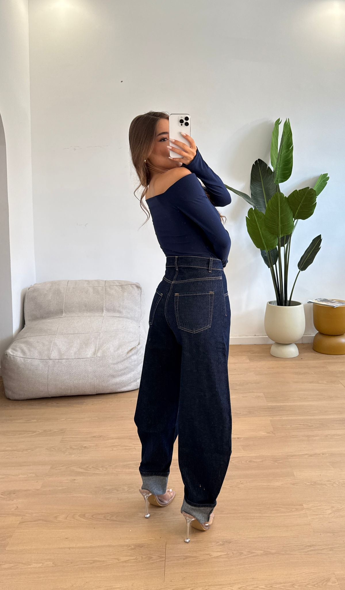 Jeans da donna in denim tela fissa modello ballon ma veste regolarmente la propria taglia e la modella indossa taglia XS