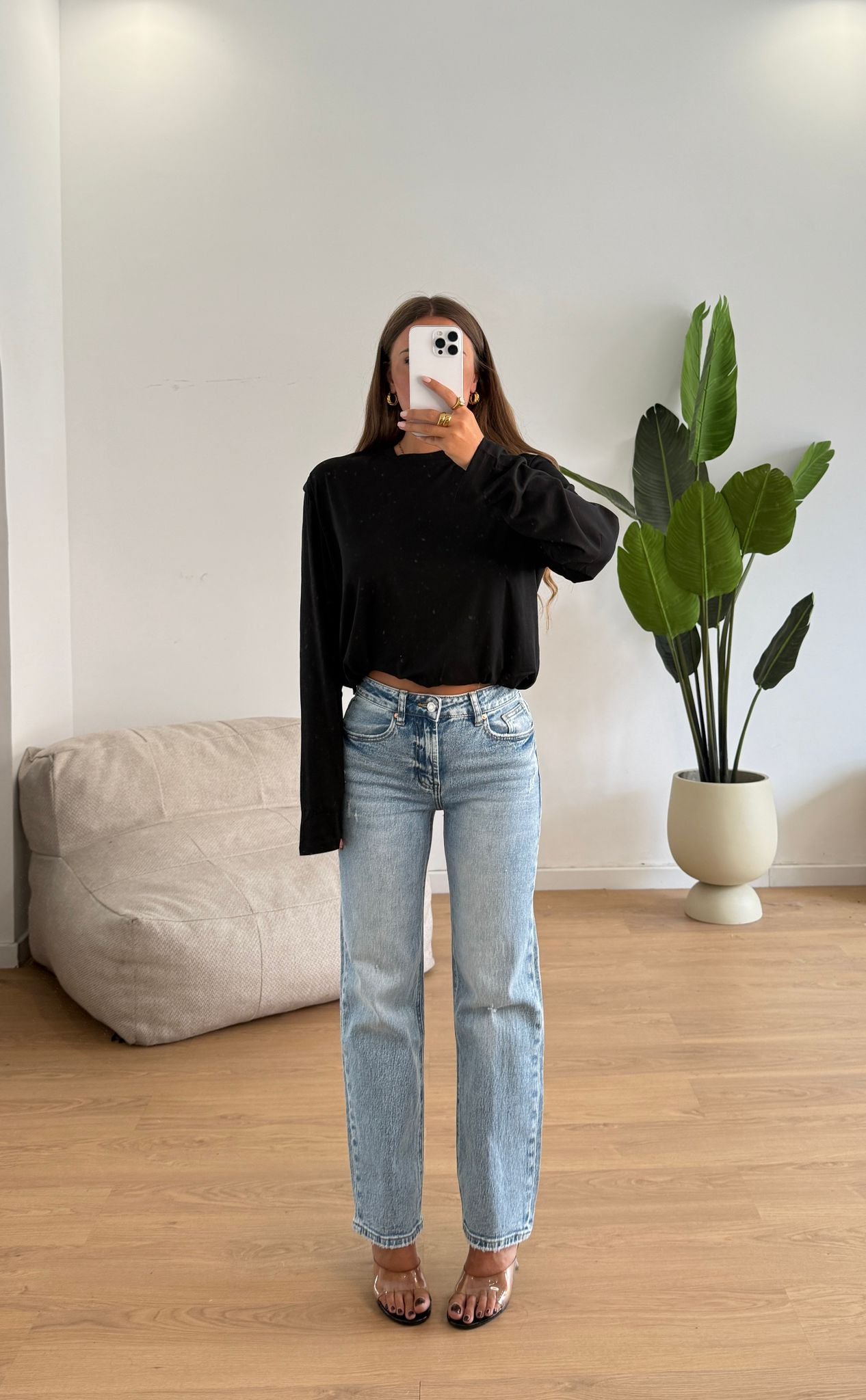 Jeans da donna in denim chiaro tessuto semi elasticizzato e veste regolarmente la propria taglia e la modella indossa taglia XS