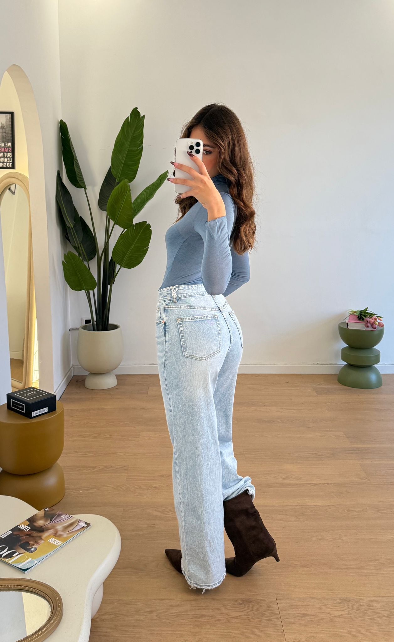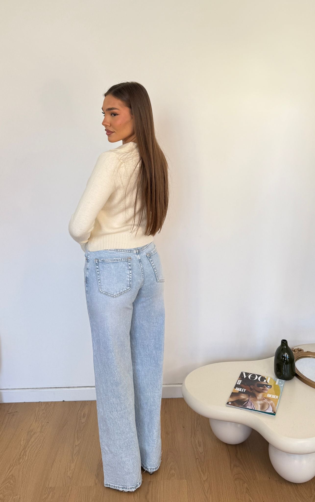Jeans da donna in denim tessuto elasticizzato, gamba larga. Veste regolarmente la propria taglia e la modella indossa taglia XS.