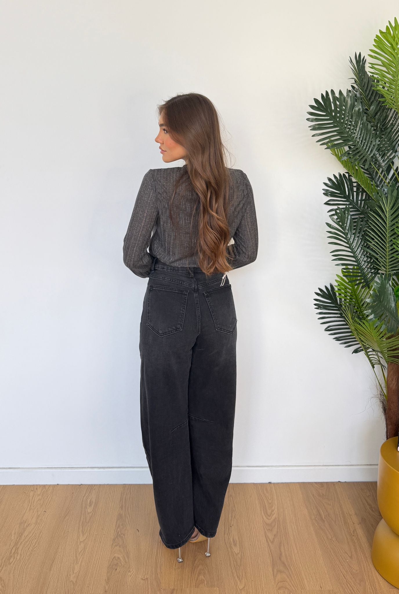Jeans da donna semi elasticizzato modello ballon e veste regolarmente la propria taglia e la modella indossa taglia XS.