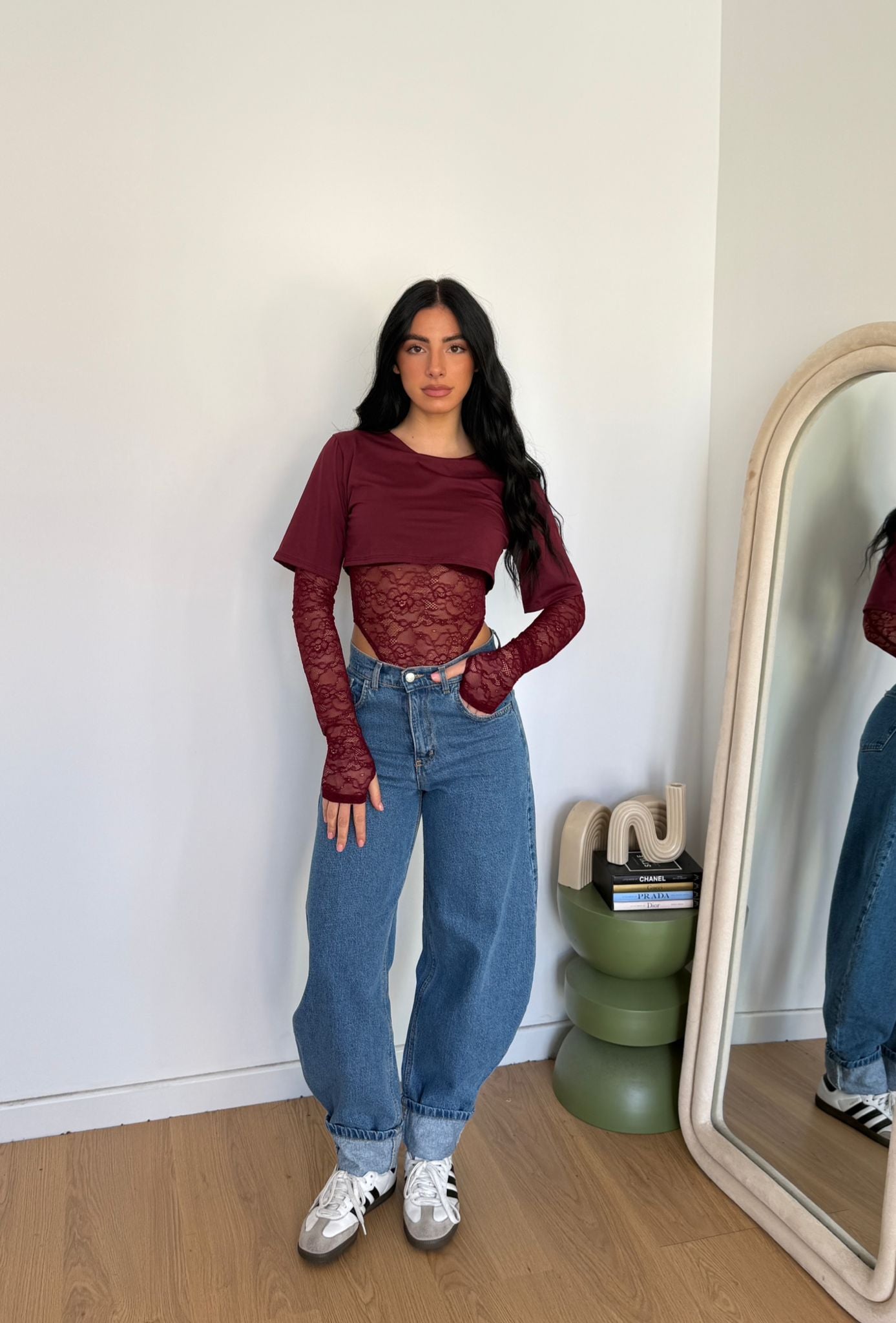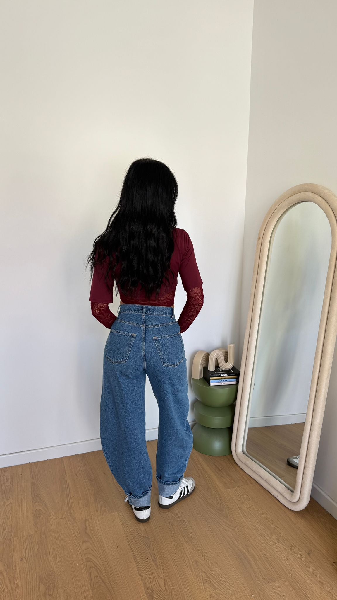 Jeans da donna in denim tela fissa modello ballon e veste regolarmente la propria taglia e la modella indossa taglia XS