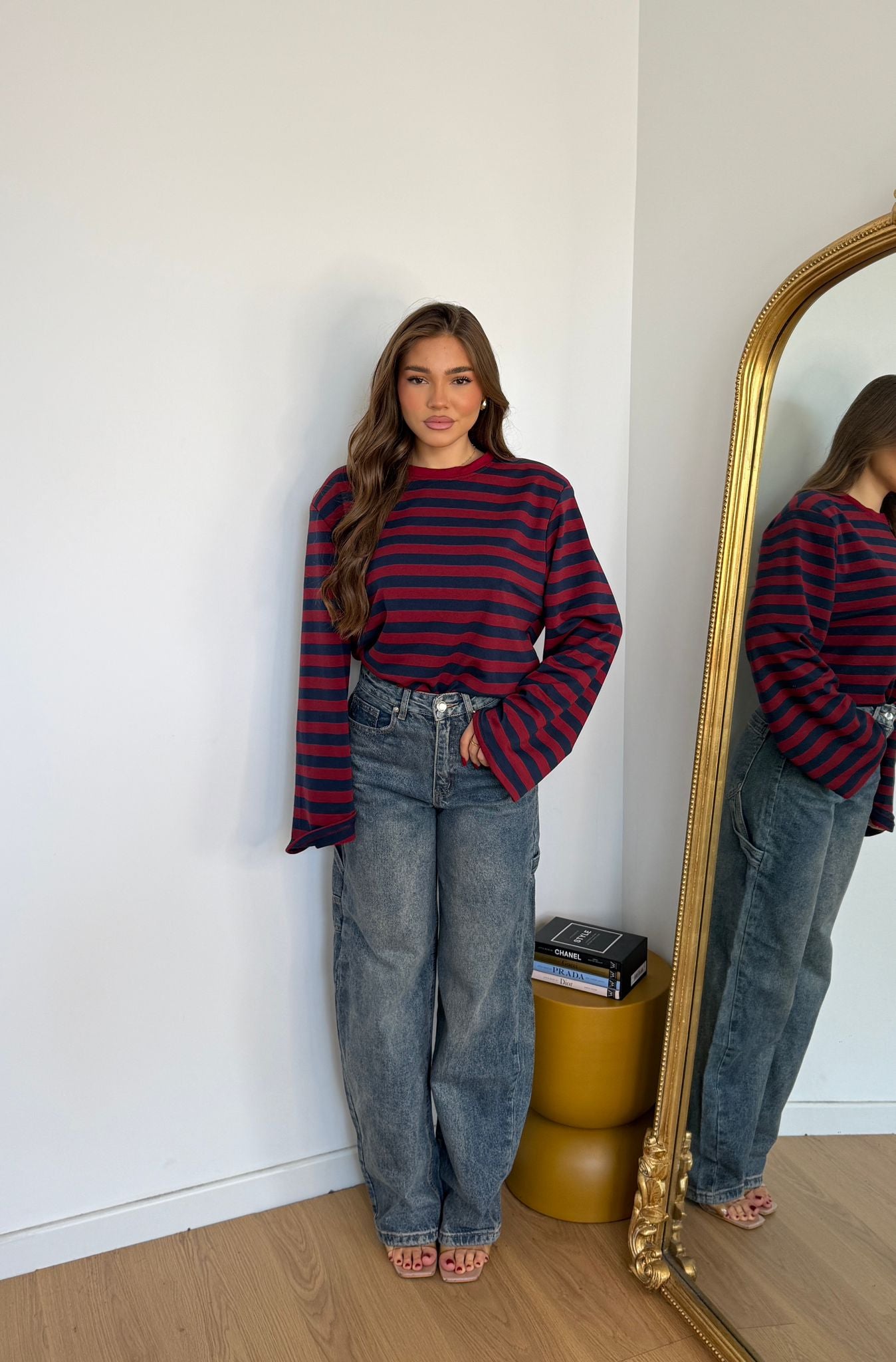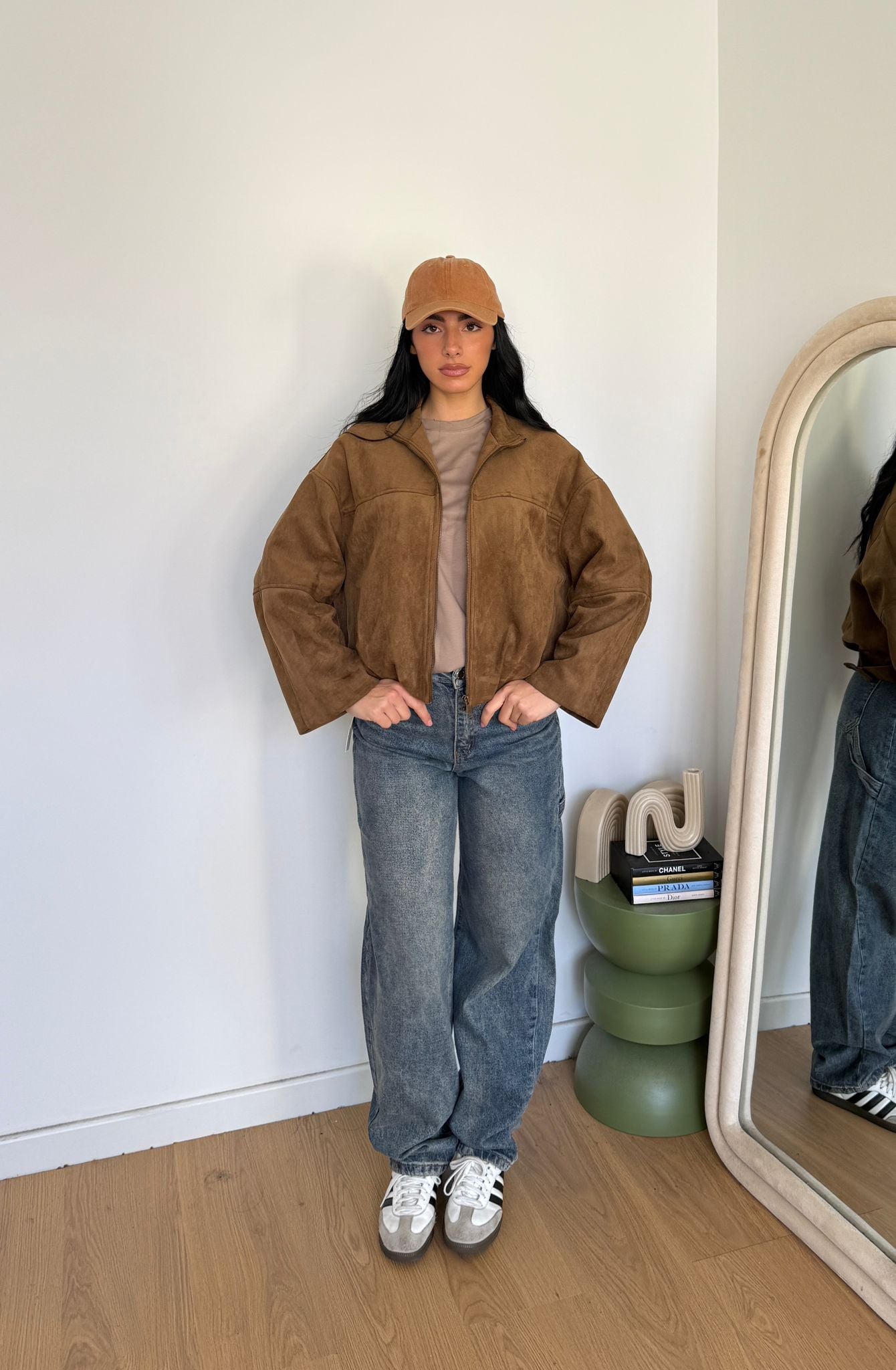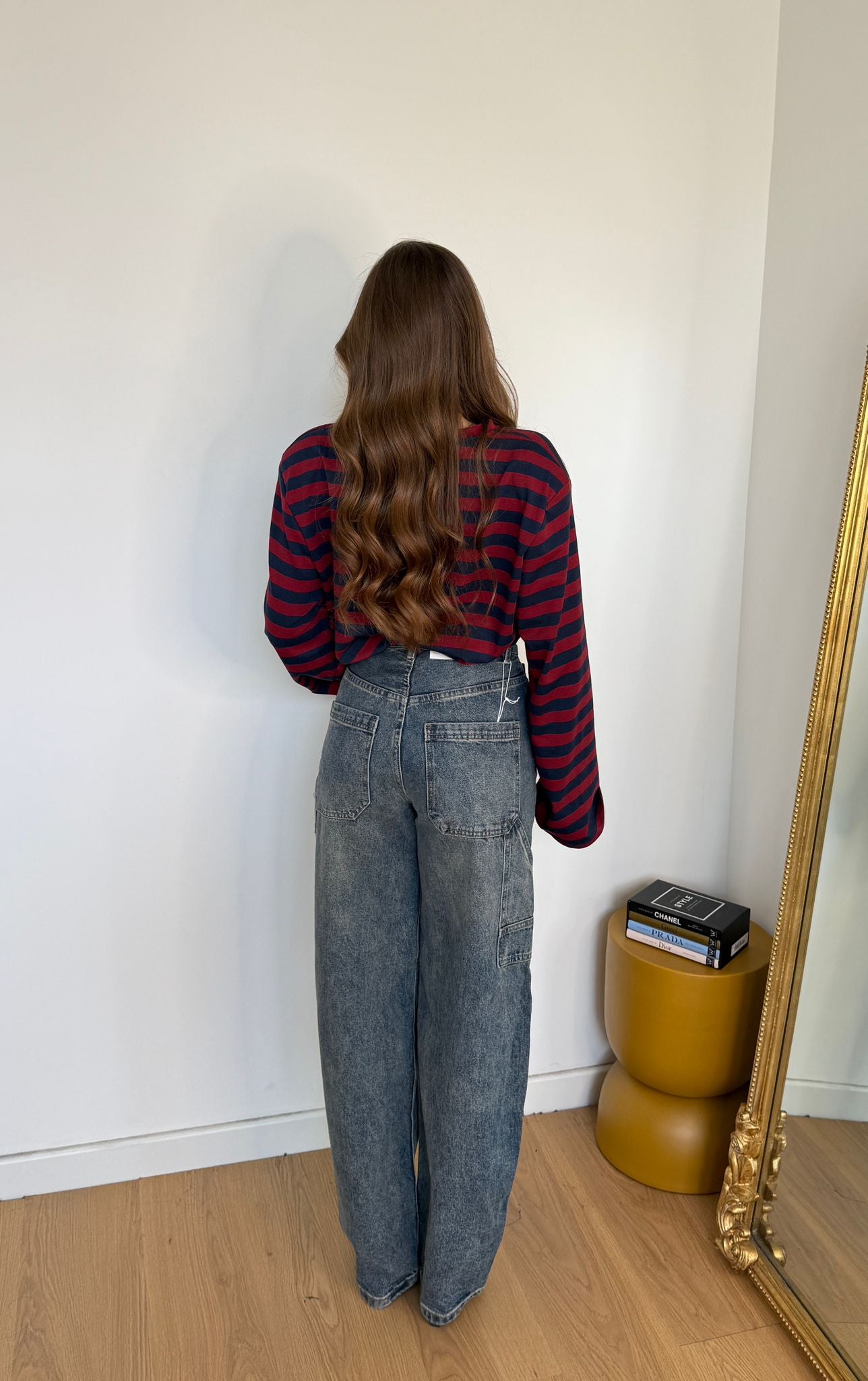 Jeans da donna in denim modello baggy carpenter in tela fissa non elasticizzato e veste regolarmente la propria taglia e la modella indossa taglia XS