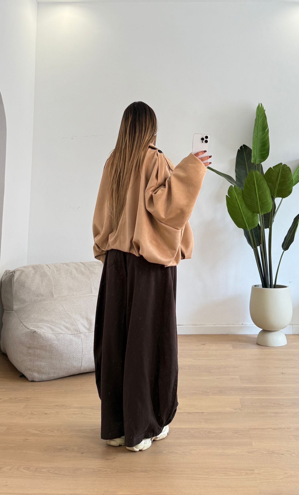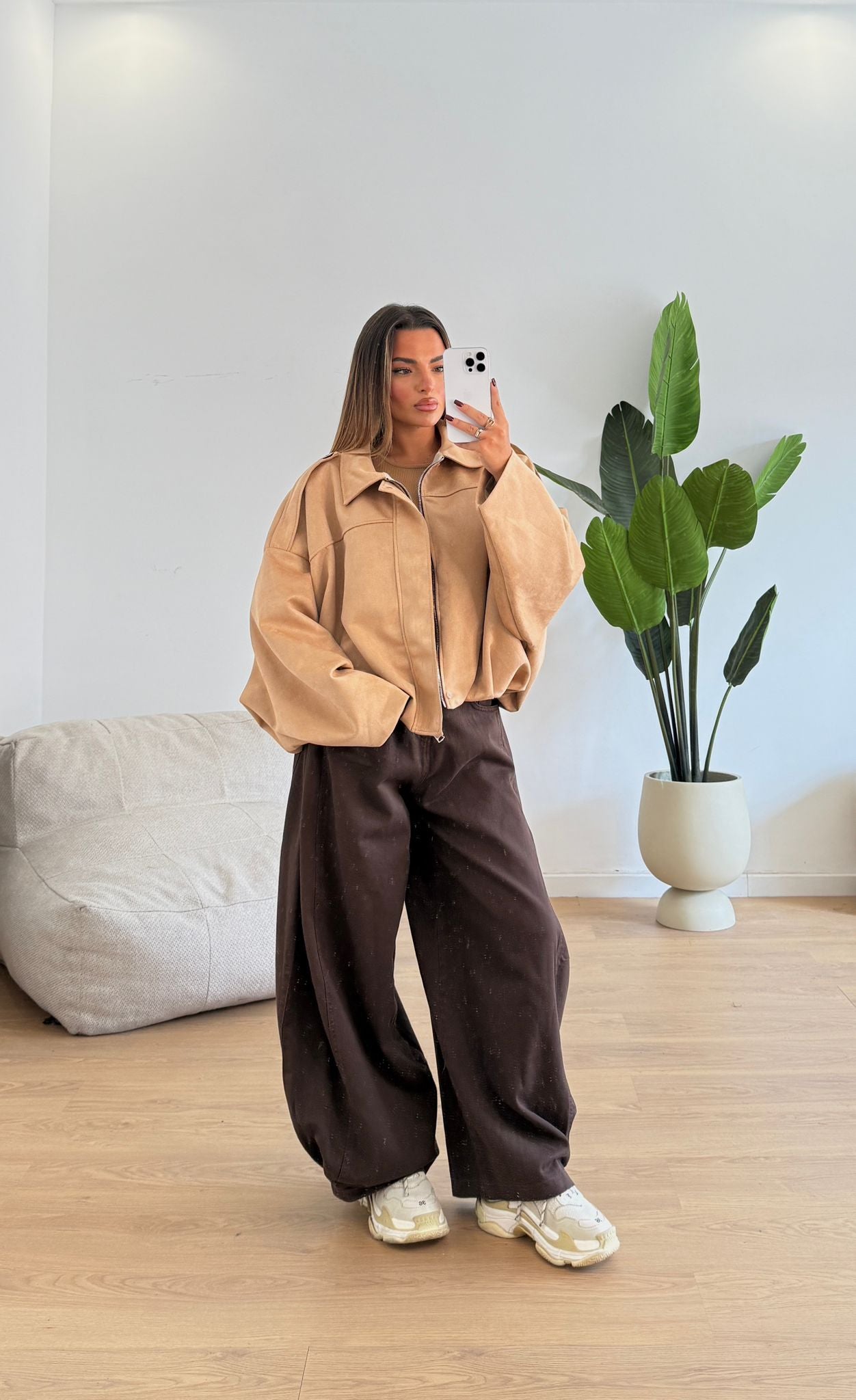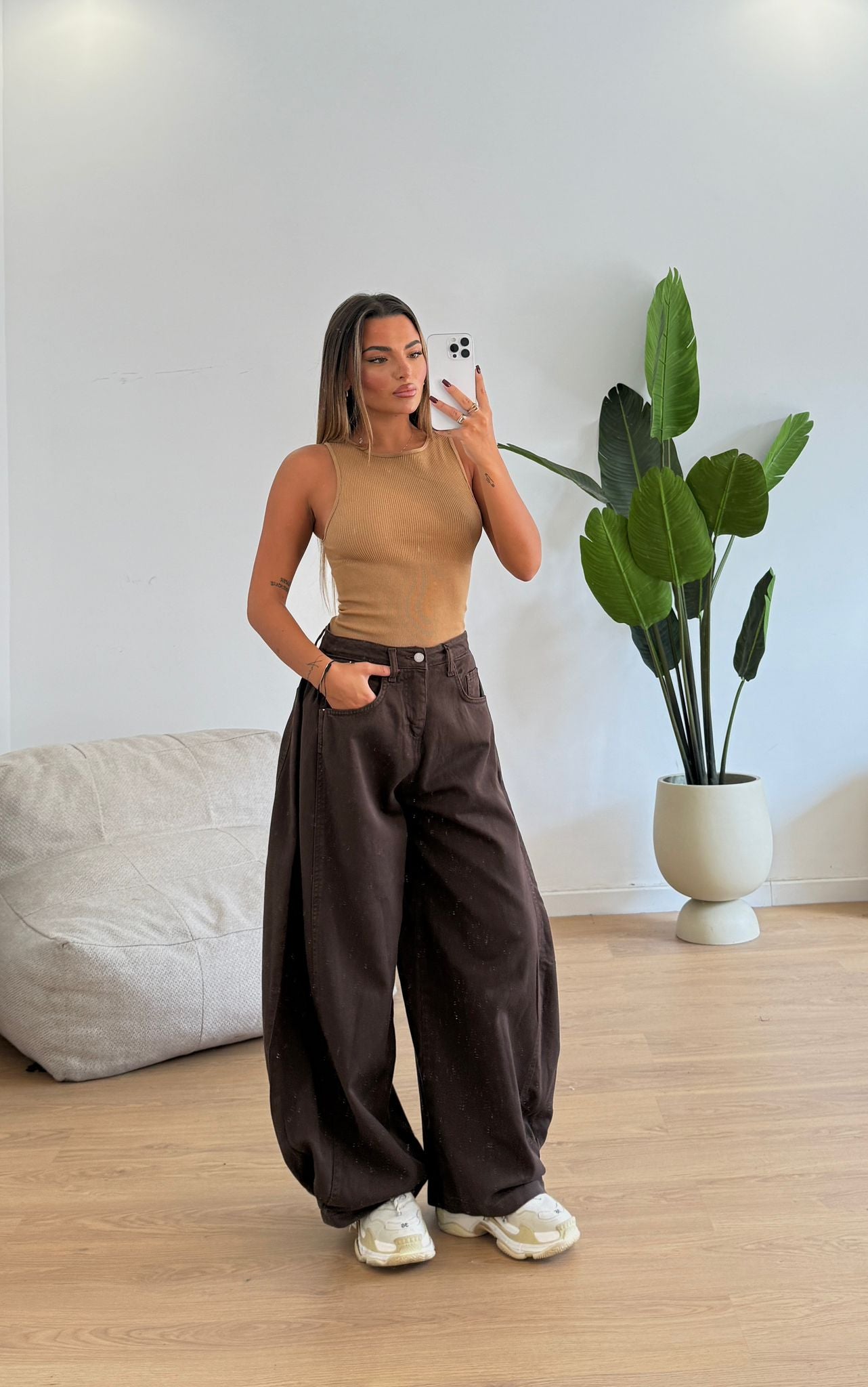 Jeans da donna in tela fissa modello ballon e veste regolarmente la propria taglia e la modella indossa taglia S