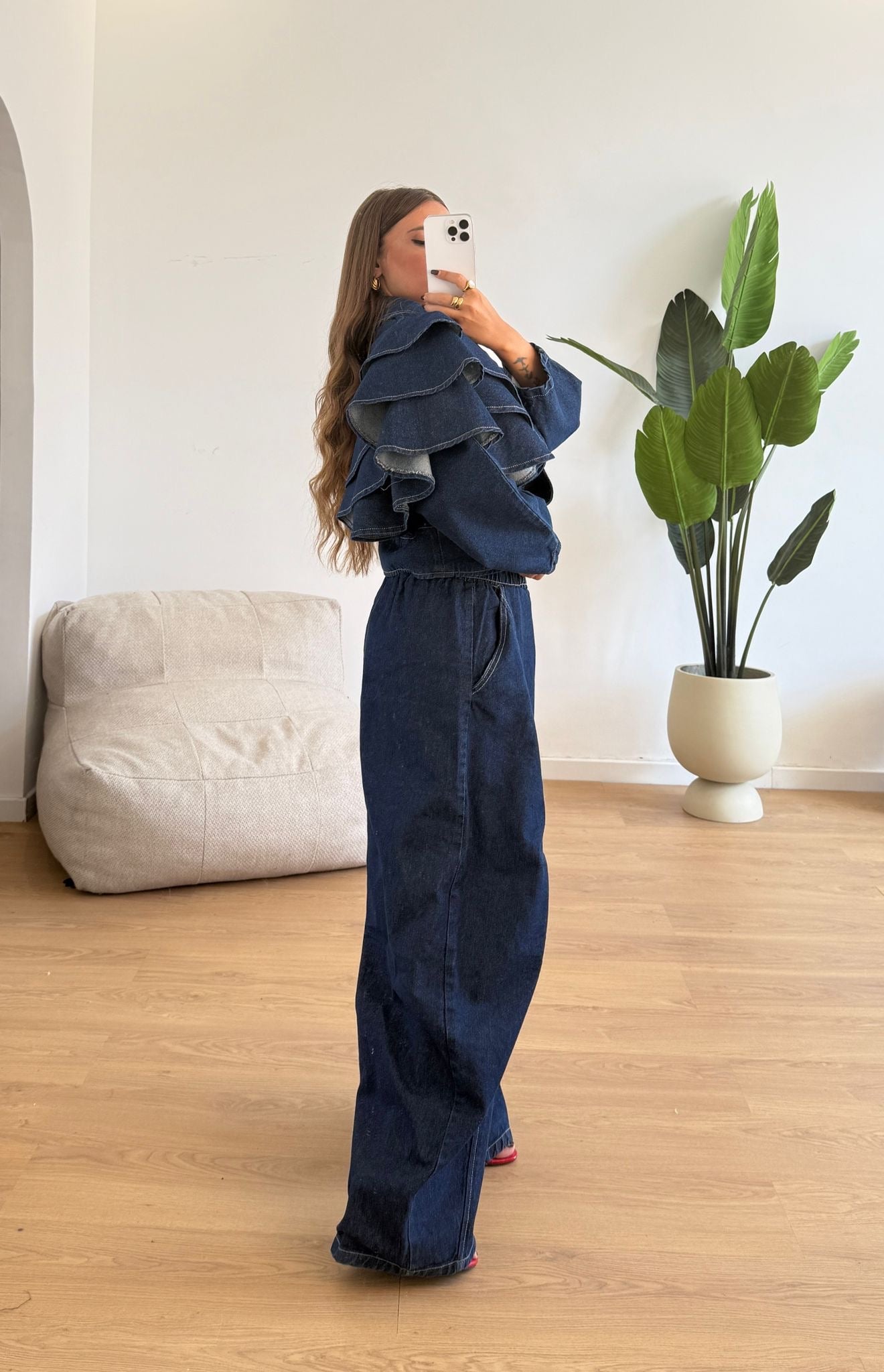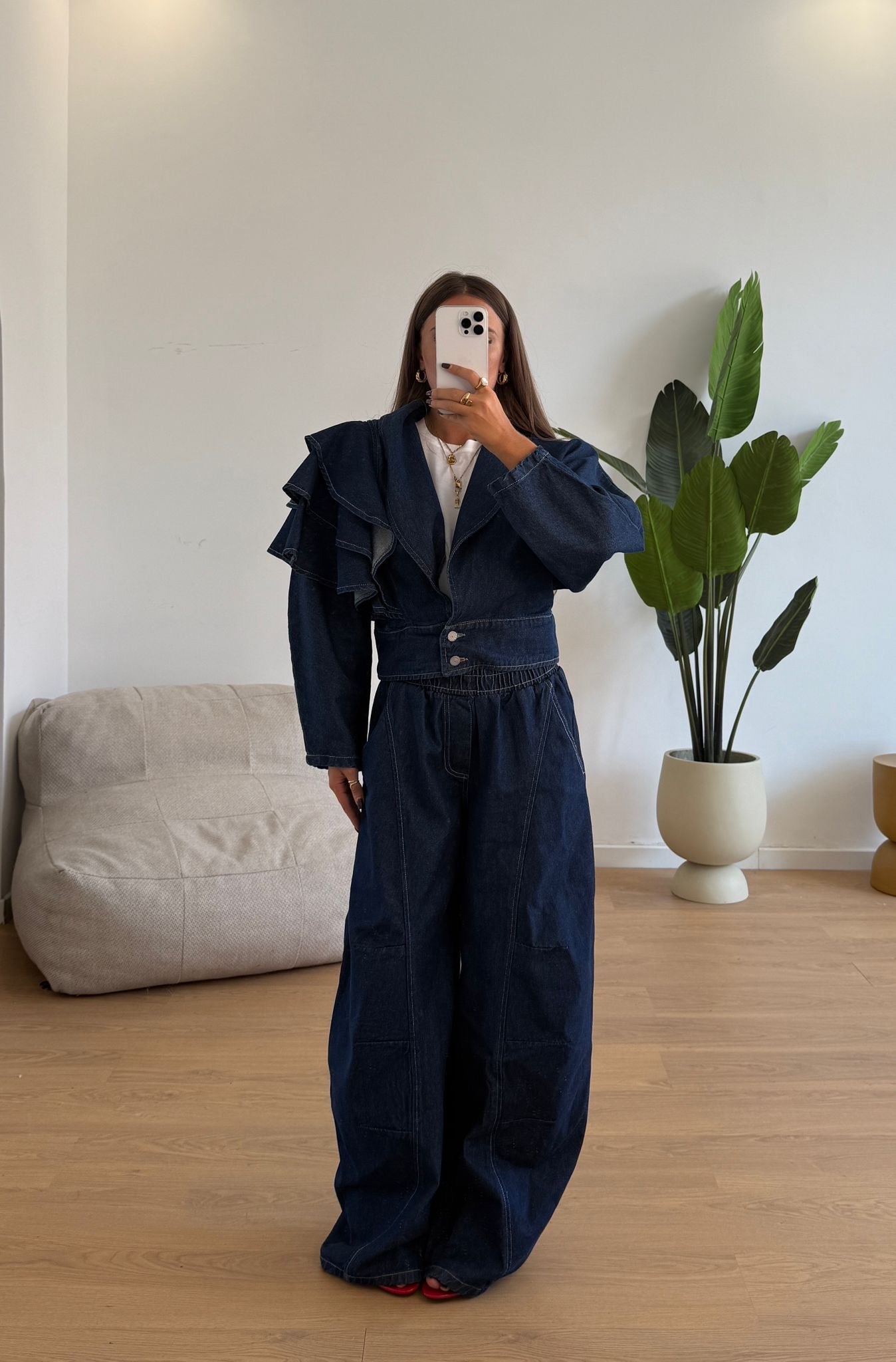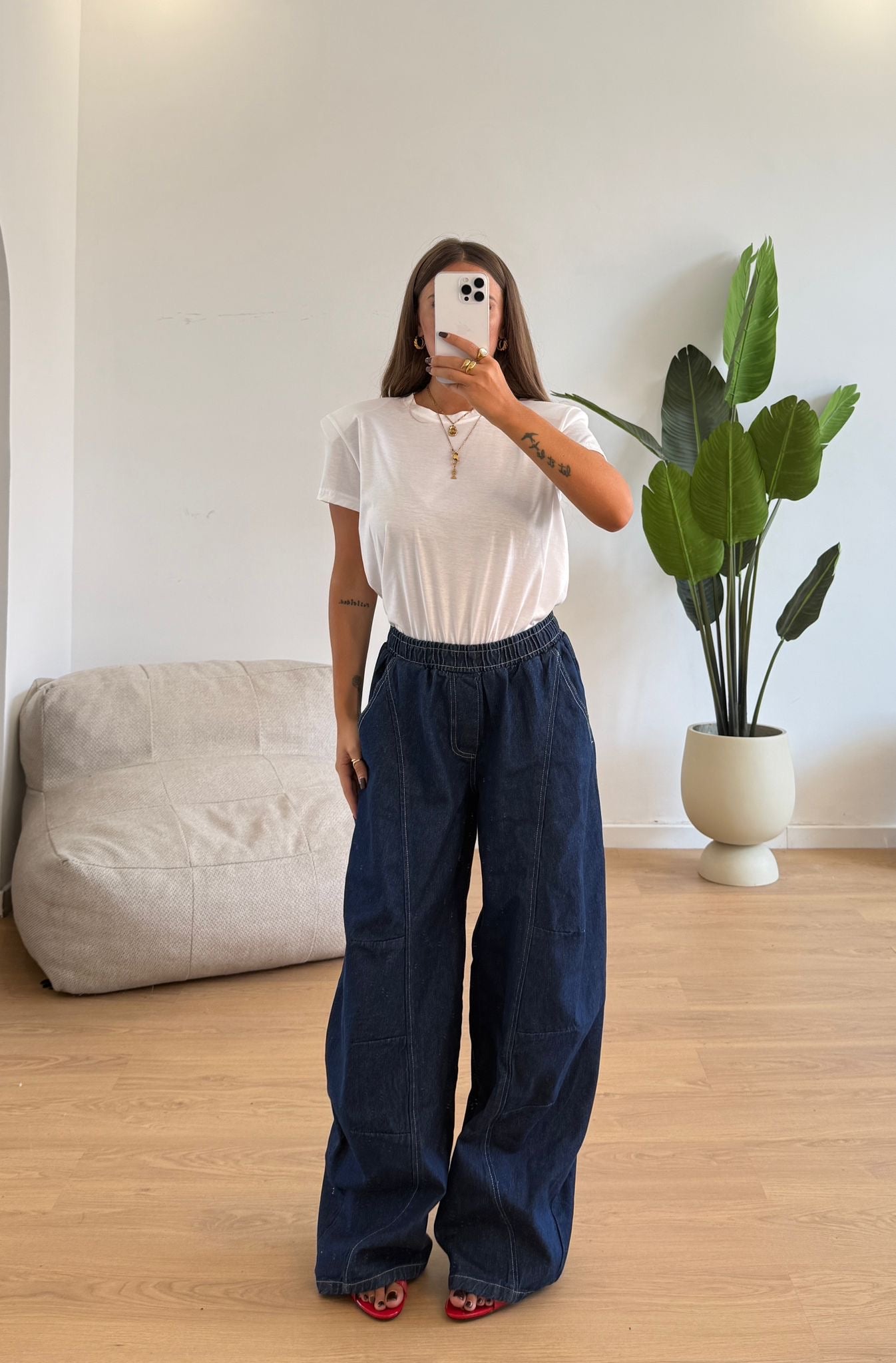 Pantalone in denim ballon fit ,elasticizzato in vita ,veste fino ad una M/L