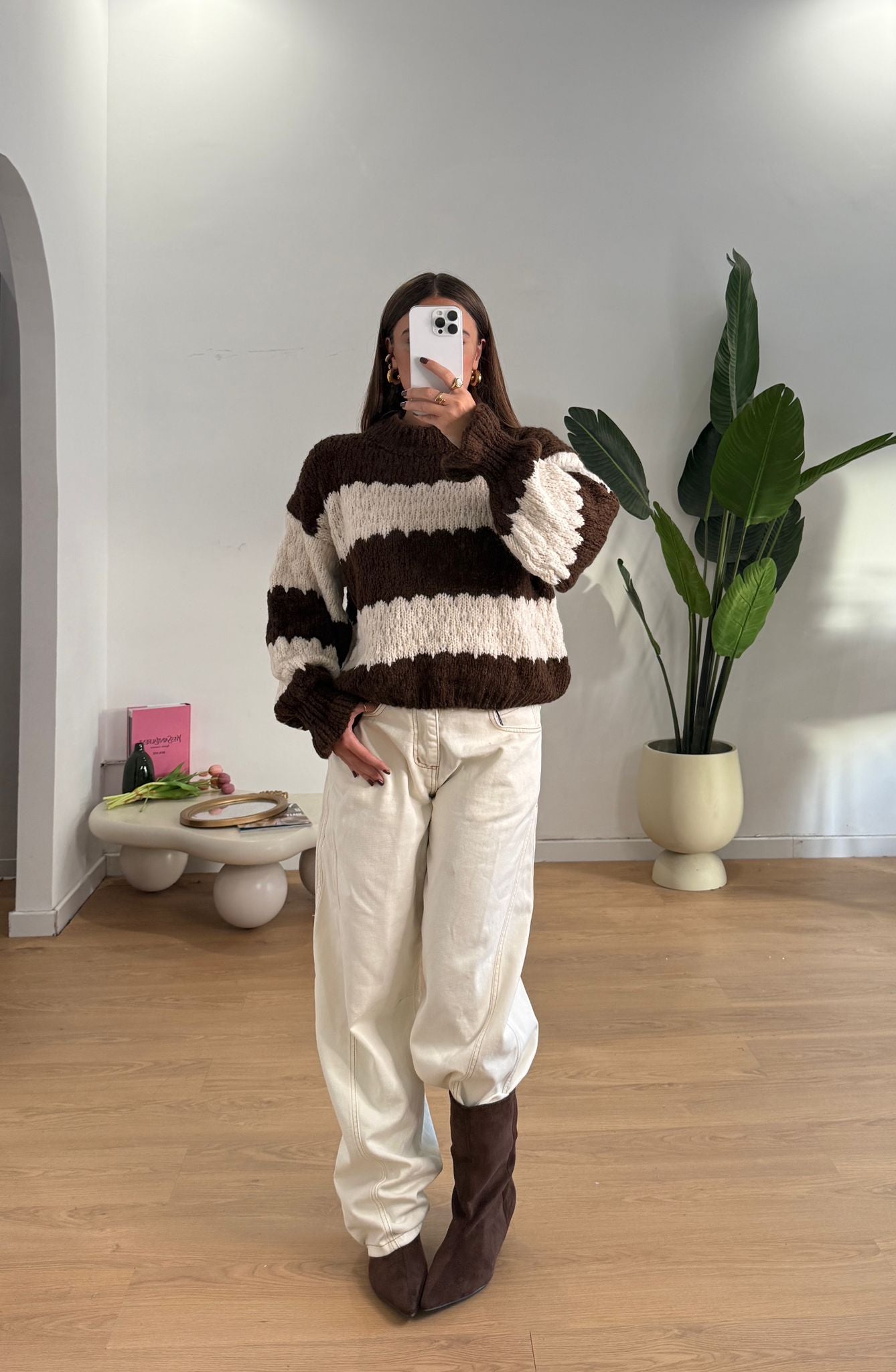 Pantalone ballon, effetto morbido, vestirà una taglia regola.