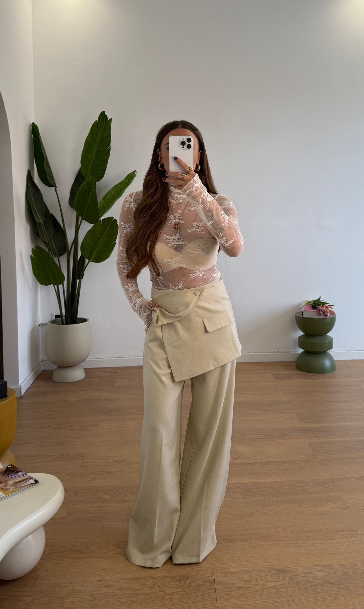 Pantalone da donna con bustino sovrapposto e veste regolarmente la propria taglia e la modella indossa taglia S