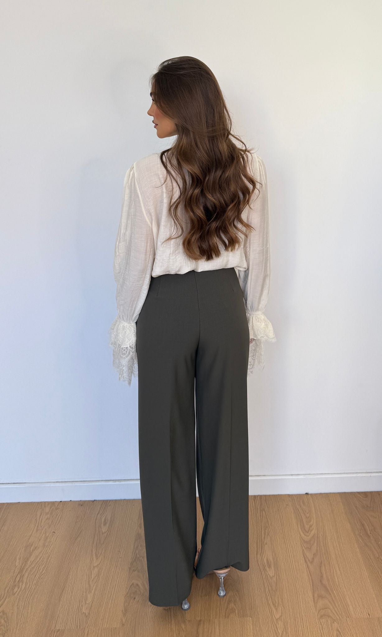 Pantalone da donna taglio classico, vita alta e veste regolarmente la propria taglia e la modella indossa taglia XS