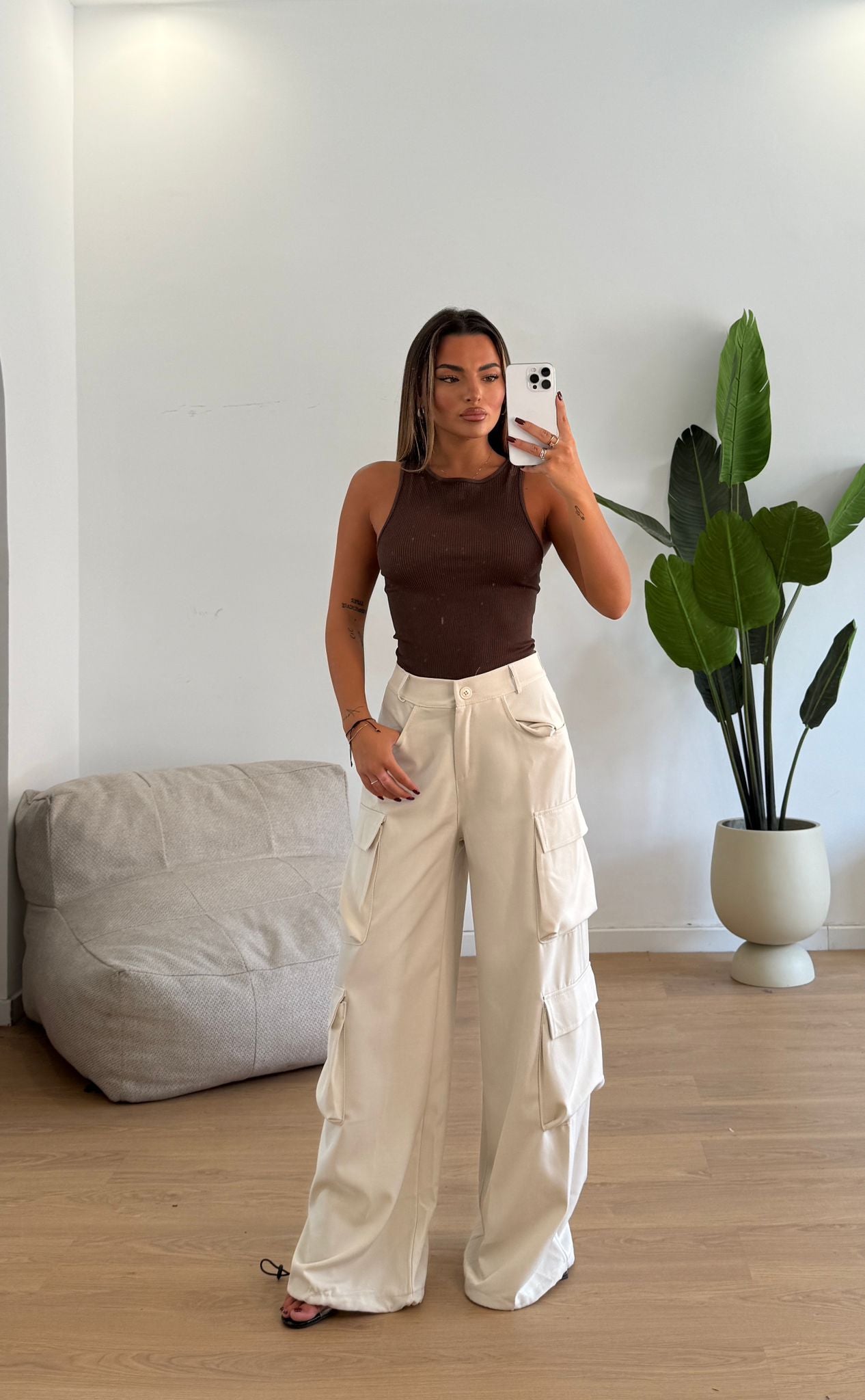 Pantalone da donna modello cargo con elastico in vita sul retro e vestirà bene fino ad una M/L