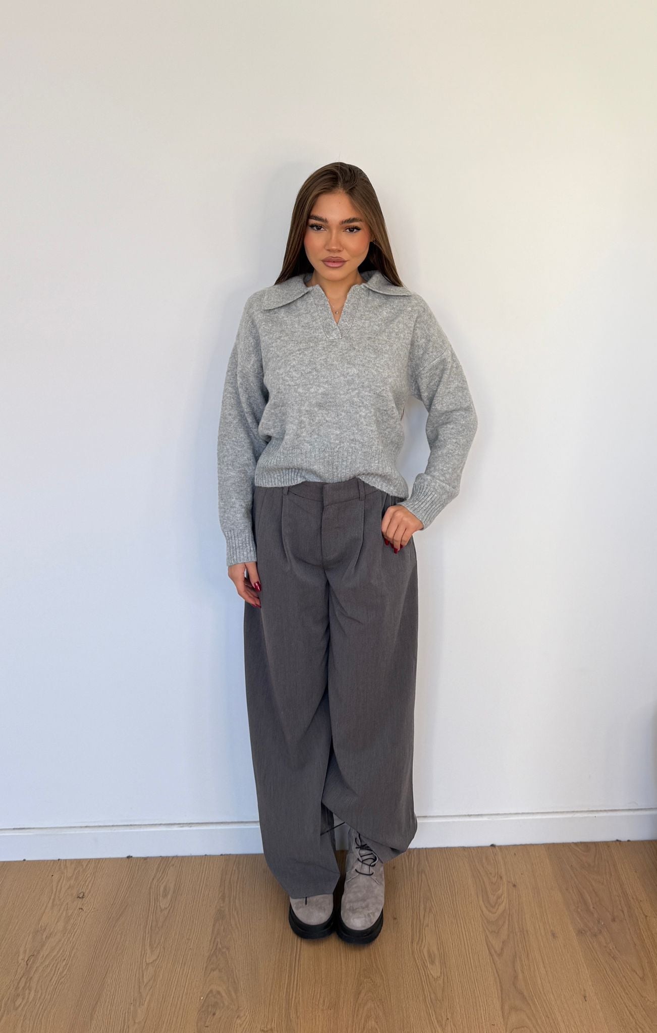 Pantalone da donna gamba larga in cotone e veste regolarmente la propria taglia e la modella indossa taglia S