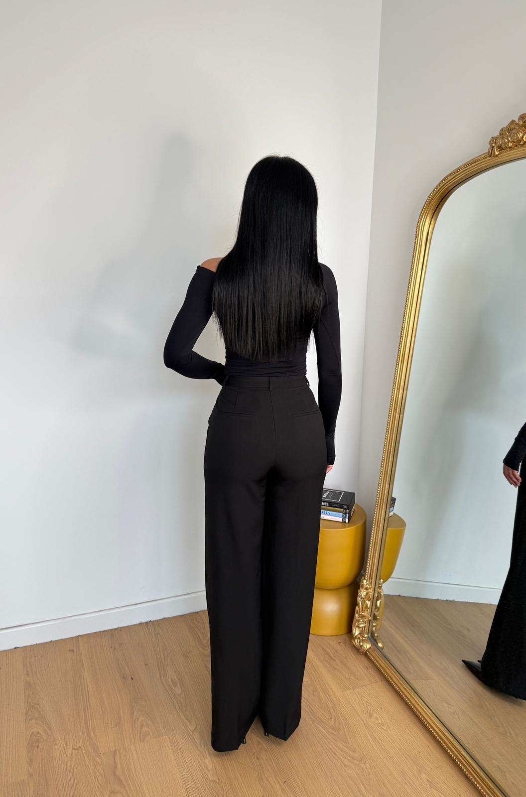 Pantalone da donna vita alta e veste regolarmente la propria taglia e la modella indossa taglia S