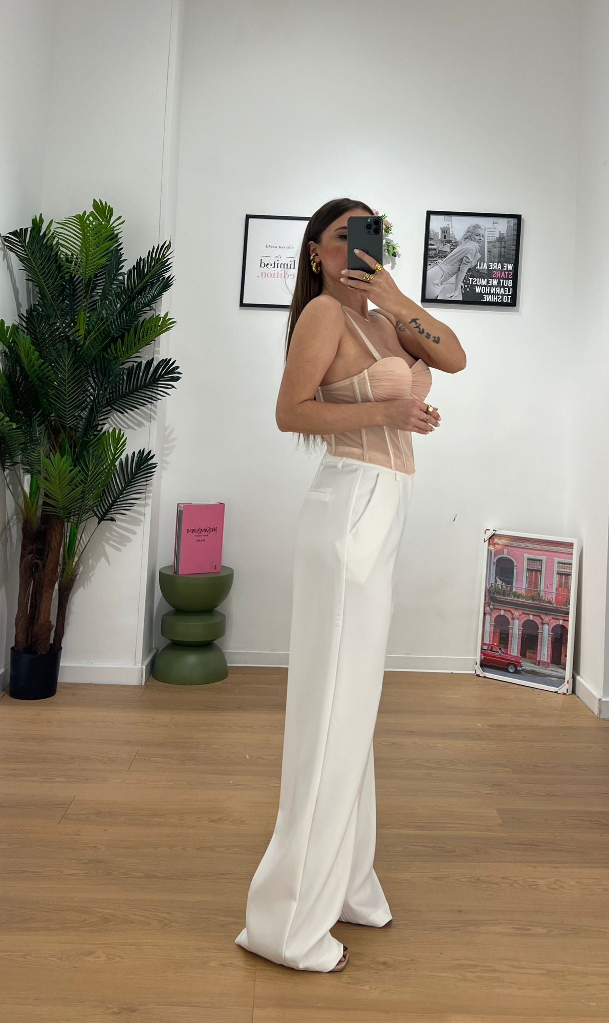 Pantalone da donna tessuto cotone, chiusura bottoncino e zip sul davanti e veste regolarmente la propria taglia e giusy indossa taglia S