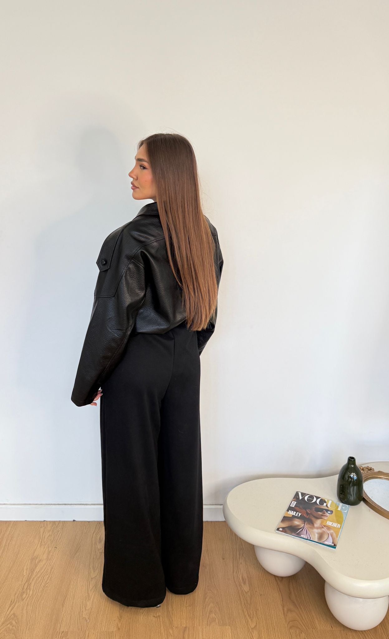 Pantatuta da donna con elastico in vita con laccio regolabile e veste bene la propria taglia, la modella indossa taglia S/M