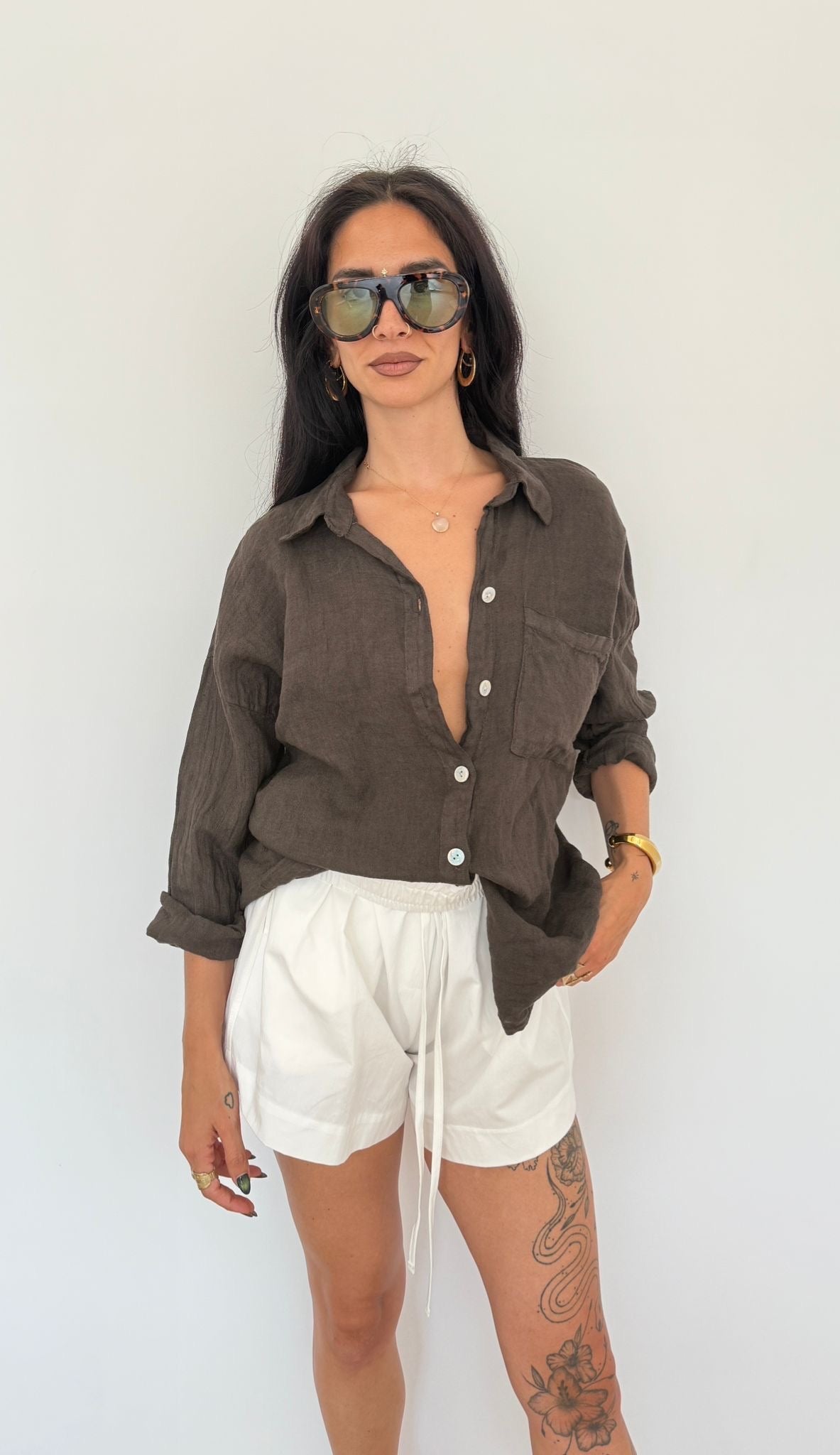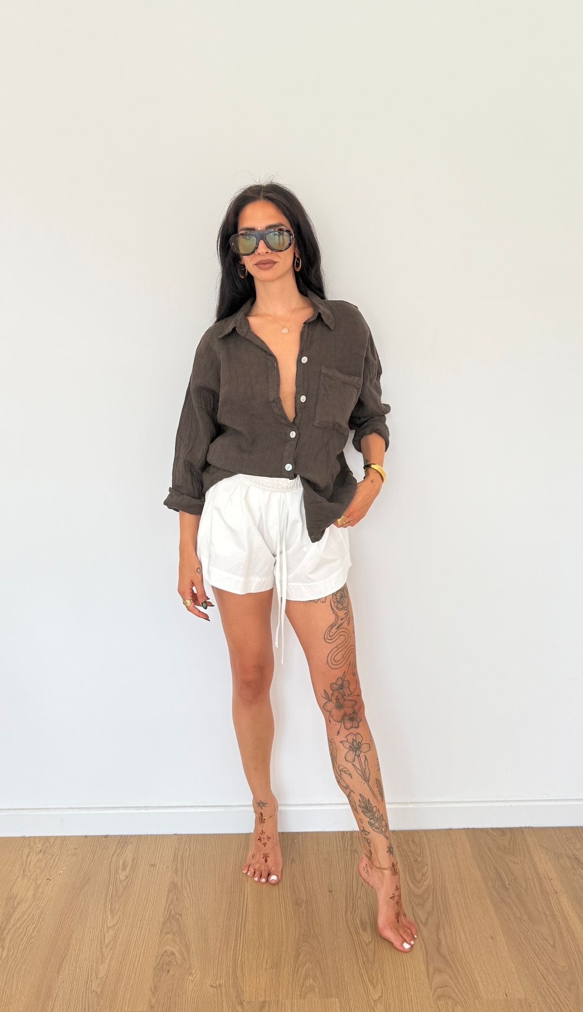 Short da donna in cotone con elastico in vita. La modella indossa la taglia S/M.