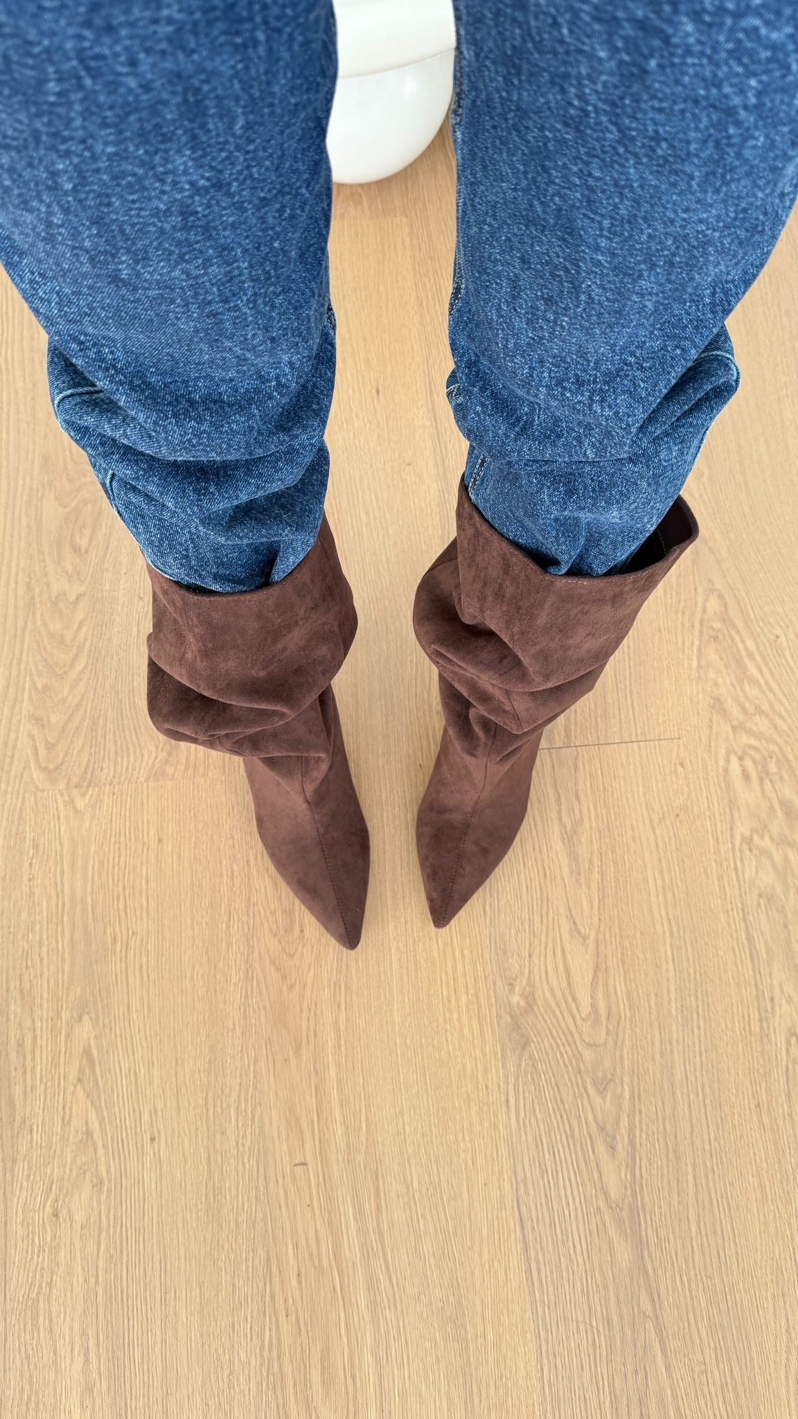 Stivale da donna in camoscio con tacco alto 3 cm e calza regolarmente il proprio numero