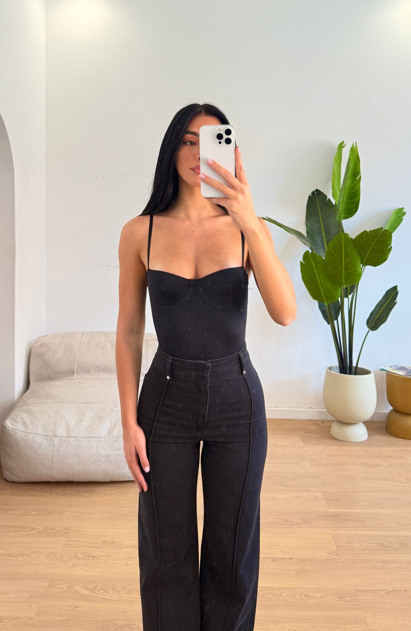 Body da donna in lycra leggermente contenitico con ferretto e bretelle regolabili, veste regolarmente la propria taglia e Giusy indossa taglia S/M
